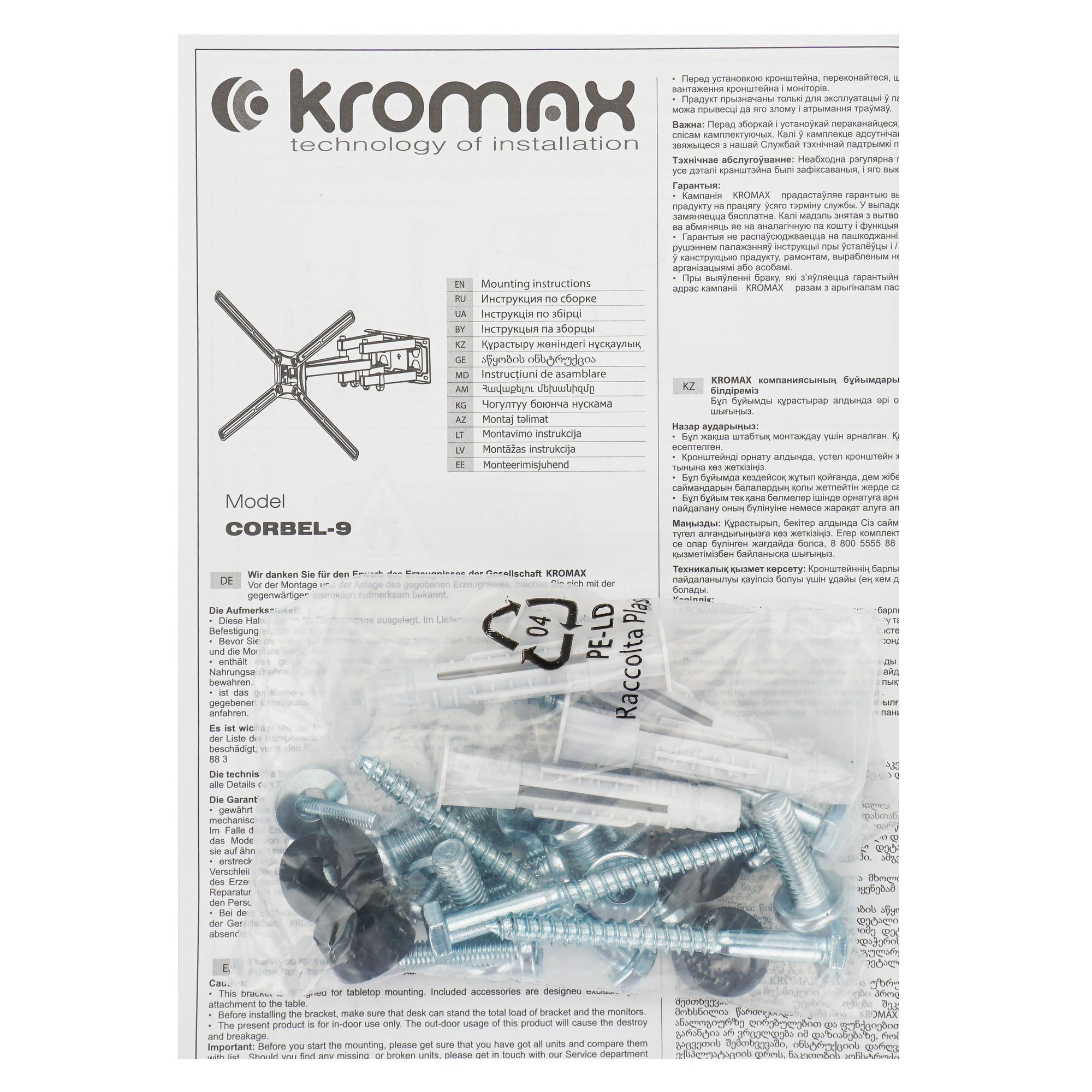 Кронштейн Kromax CORBEL-9 плотно фиксируется на поверхности. Он выдерживает нагрузку до 50 кг. Расстояние от стены в сложенном состоянии составляет 68 мм. Стальная конструкция с окрашенным покрытием черного цвета гарантирует устойчивость к деформации и механическим воздействиям.