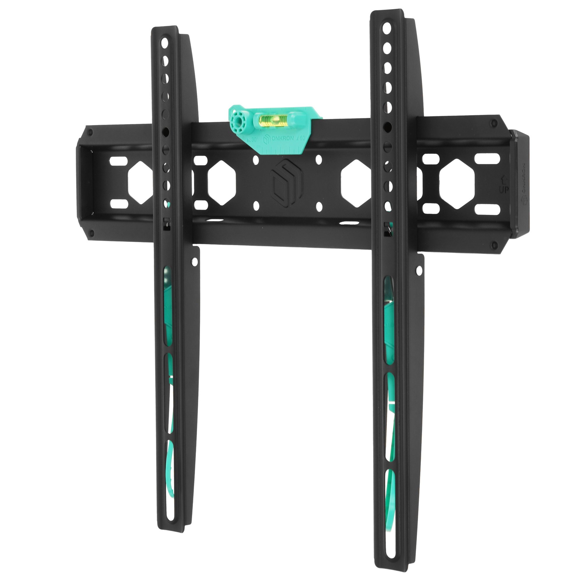 При изготовлении кронштейна для ТВ ONKRON FM5 производитель отдал предпочтение исключительно материалам повышенной прочности, которые не боятся ежедневной нагрузки до 56.8 кг. Неоспоримым достоинством верного ассистента является наличие встроенного уровня, который позволяет подобрать наиболее правильное положение при его установке в учебных или офисных помещениях.