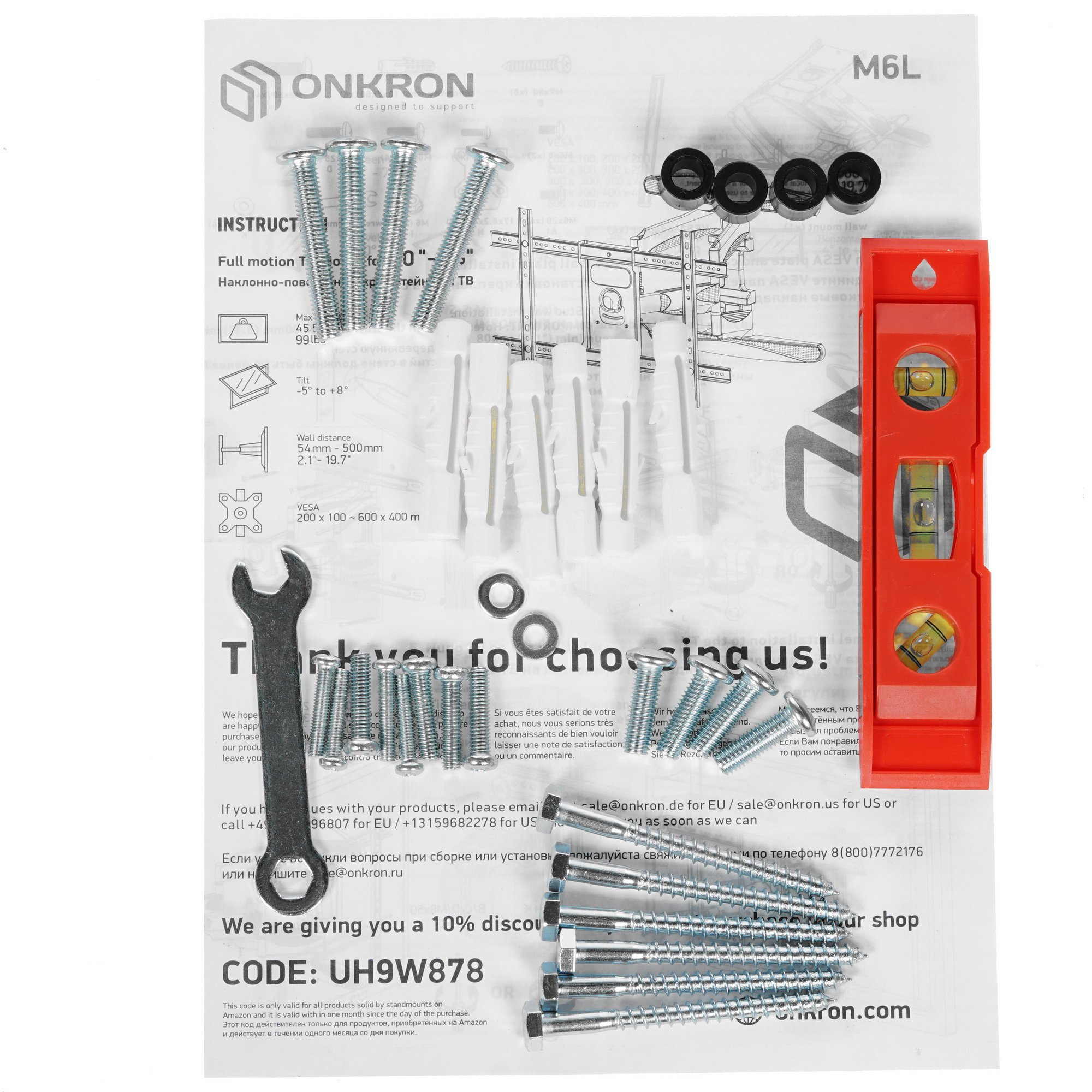 Кронштейн ONKRON M6L для телевизора 40"-75" наклонно-поворотный, черный