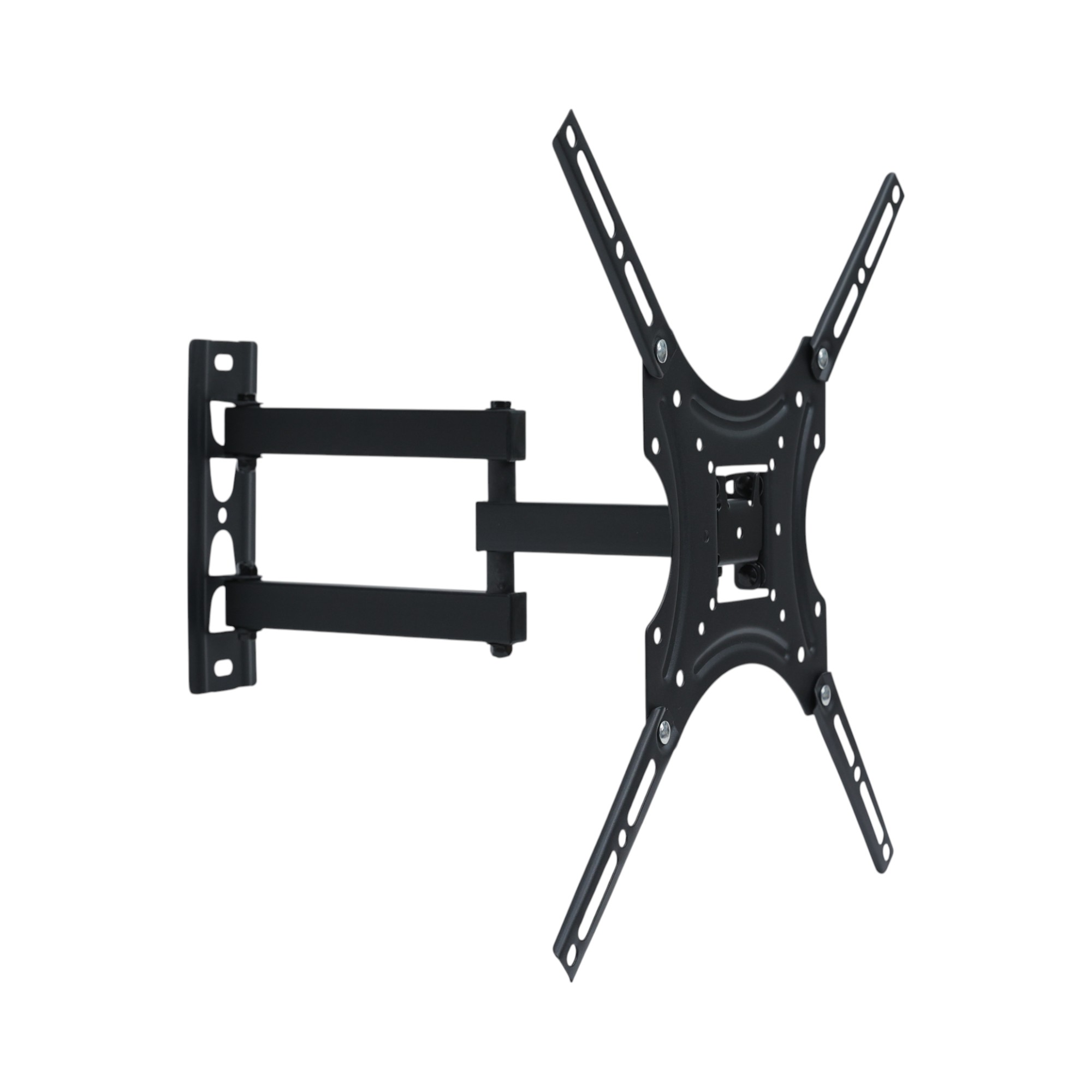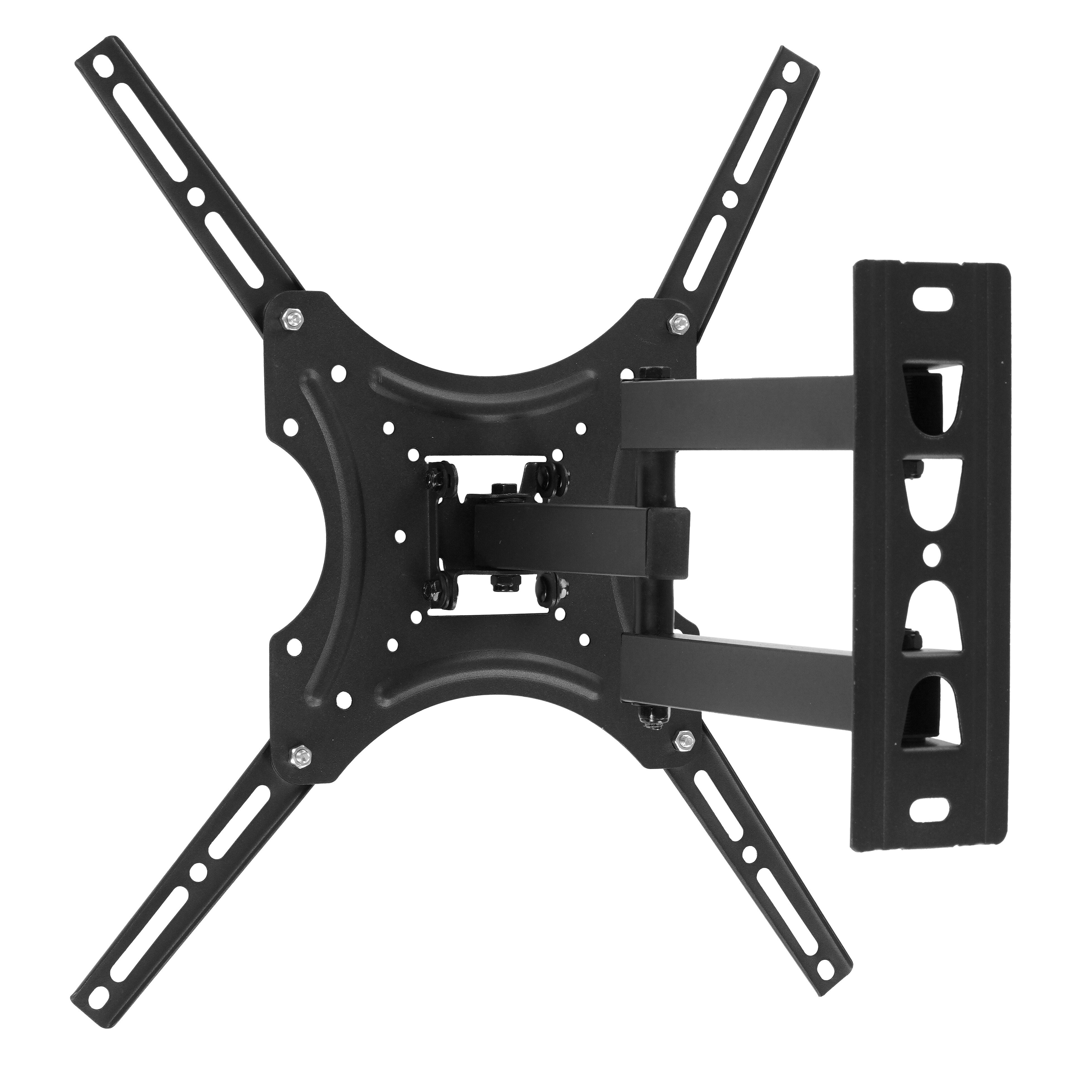 Кронштейн для ТВ ONKRON STE344-B устанавливается на стену. В конструкции реализованы регулировка угла наклона и поворот до 180° для удобной настройки положения просмотра. Крепление совместимо с телевизорами, интерактивными панелями и мониторами диагональю экрана от 26 до 55 дюймов. Монтажная пластина с отверстиями делает удобным процесс установки.