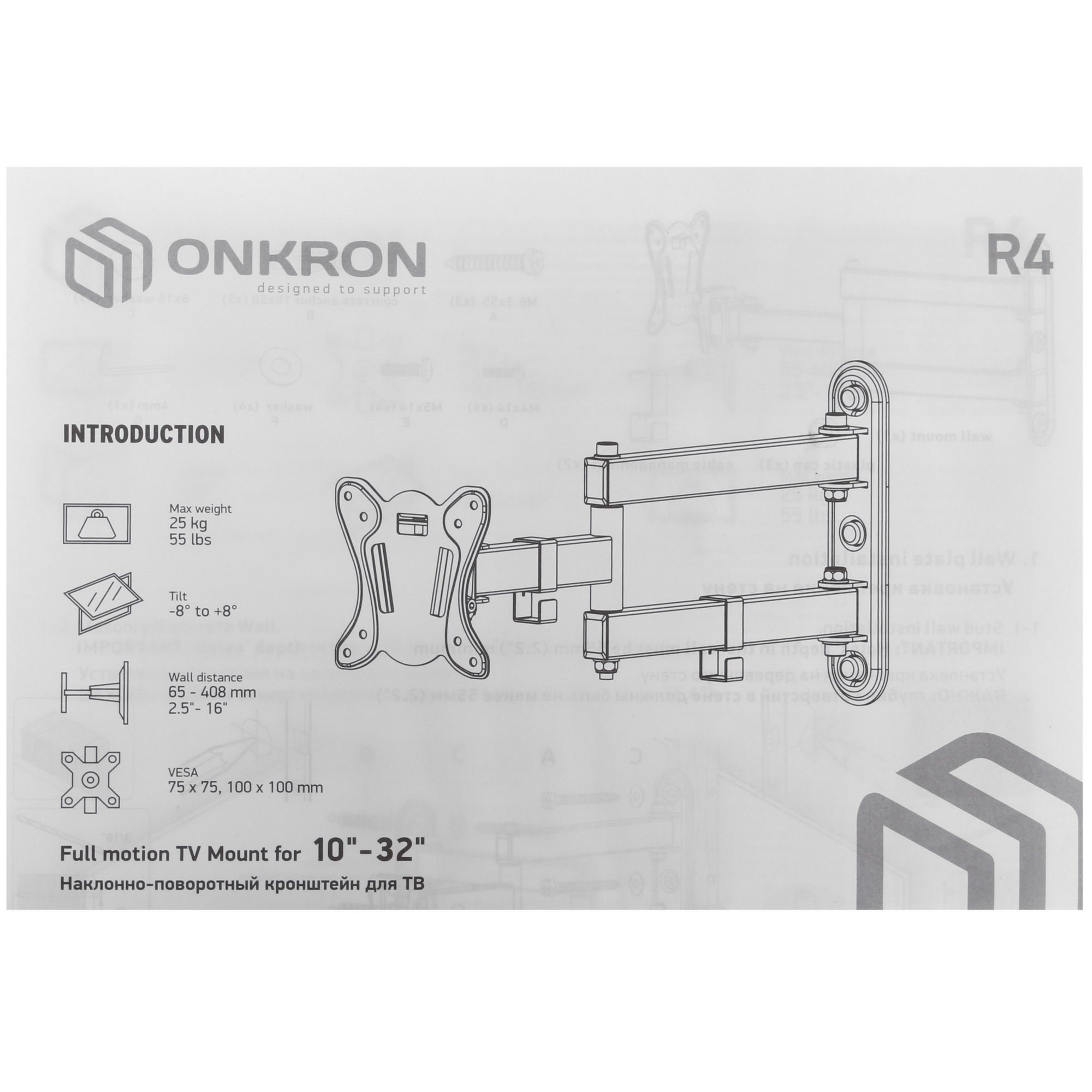 Кронштейн ONKRON R4 для телевизора 10"-32" наклонно-поворотный, черный