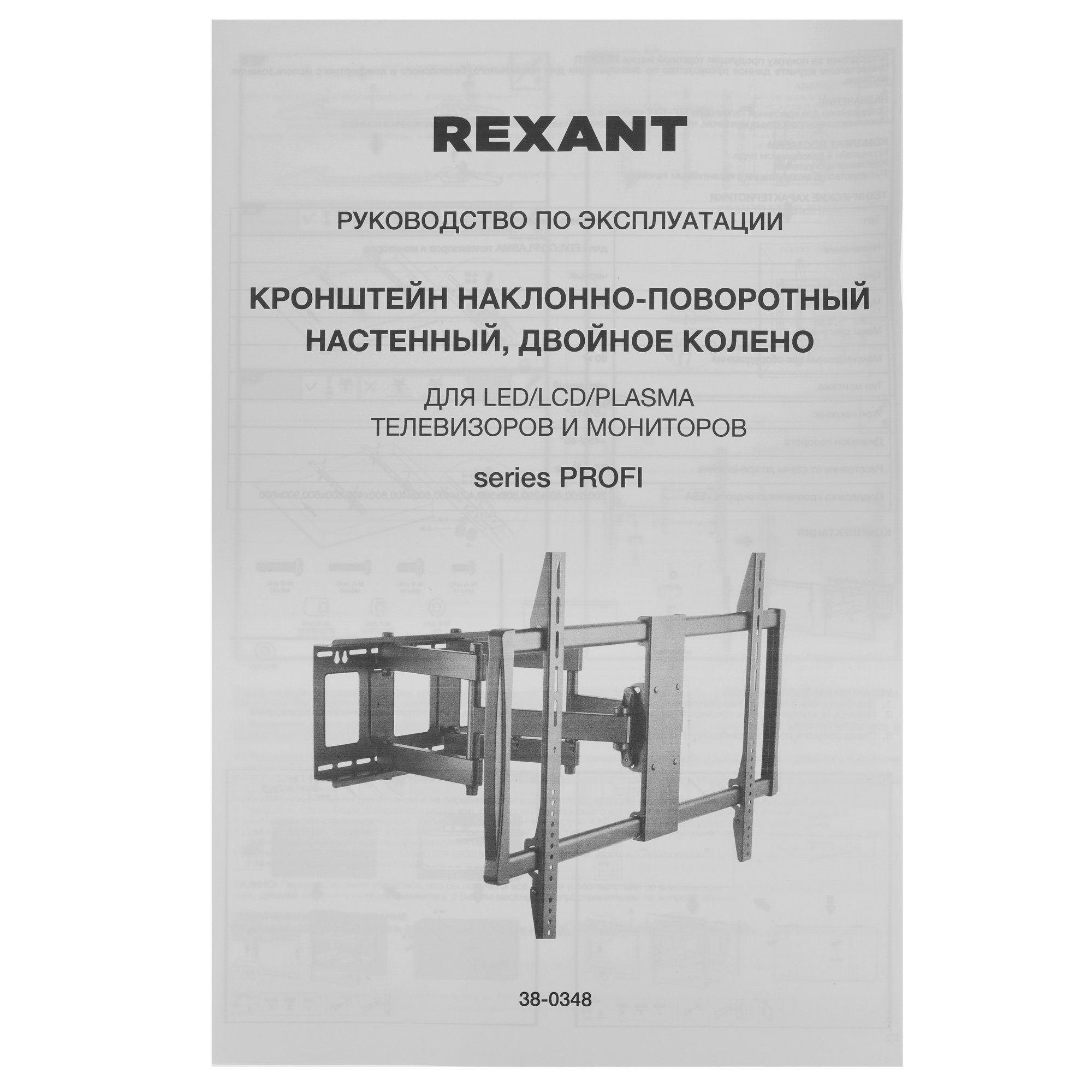 Кронштейн для ТВ Rexant 38-0348 выдерживает вес до 80 кг. Он крепится на стену на расстоянии 70-625 мм. Уровень наклона можно регулировать на 5° вверх и на 15° вниз. Угол между крайним левым и крайним правым положением ответной части кронштейна составит 90°. Конструкция из двух колен позволяет устанавливать кронштейн как на внешний, так и на внутренний угол стены.