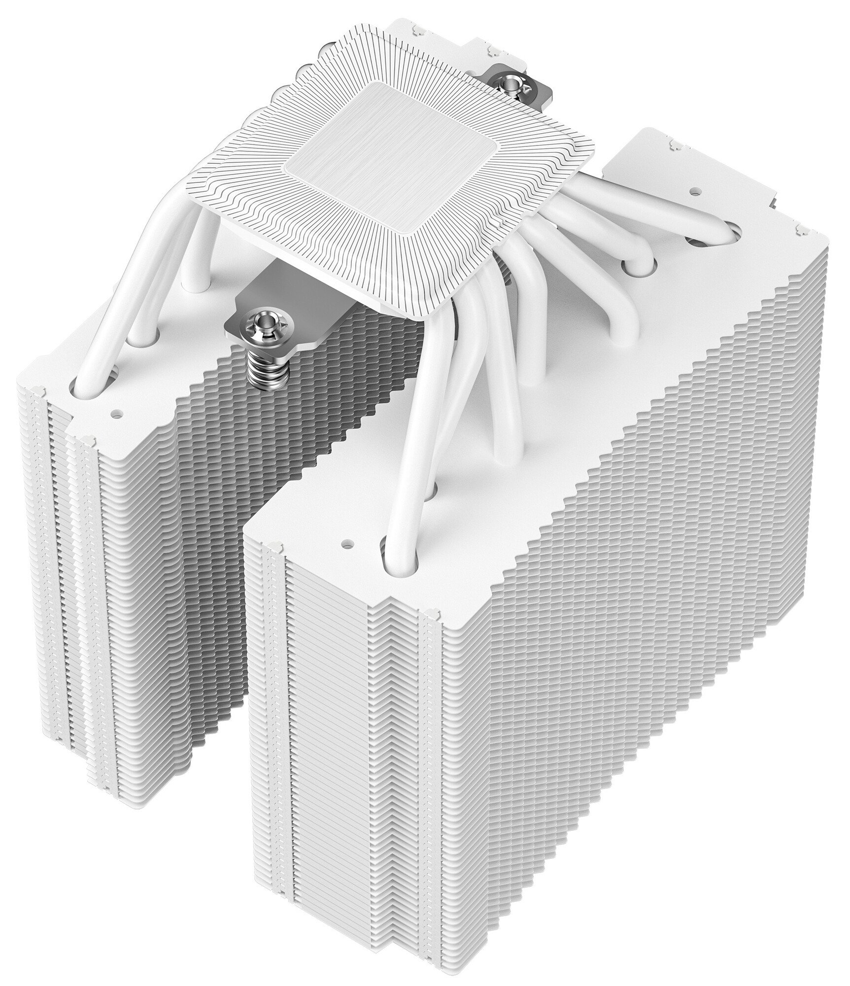 Аккуратный и стильный корпус ASSASSIN VC ELITE WH точно направляет поток воздуха через пластины радиаторных башен, а передвижной вентилятор диаметром 120 мм позволяет беспрепятственно установить высокие модули оперативной памяти с RGB-подсветкой.