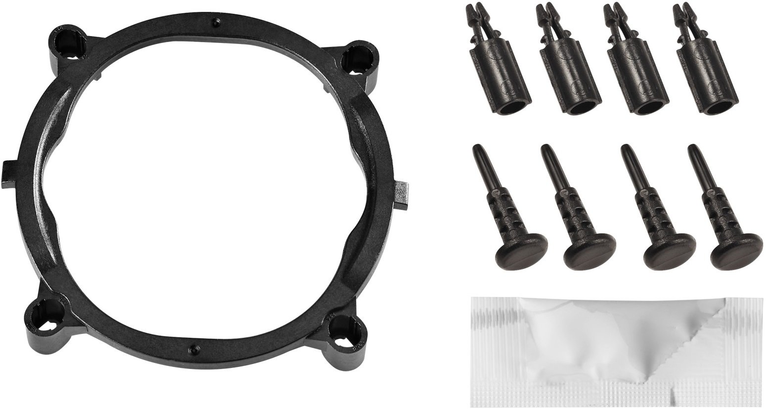В комплекте, помимо самой системы охлаждения, находятся термопаста, набор крепления для сокетов.