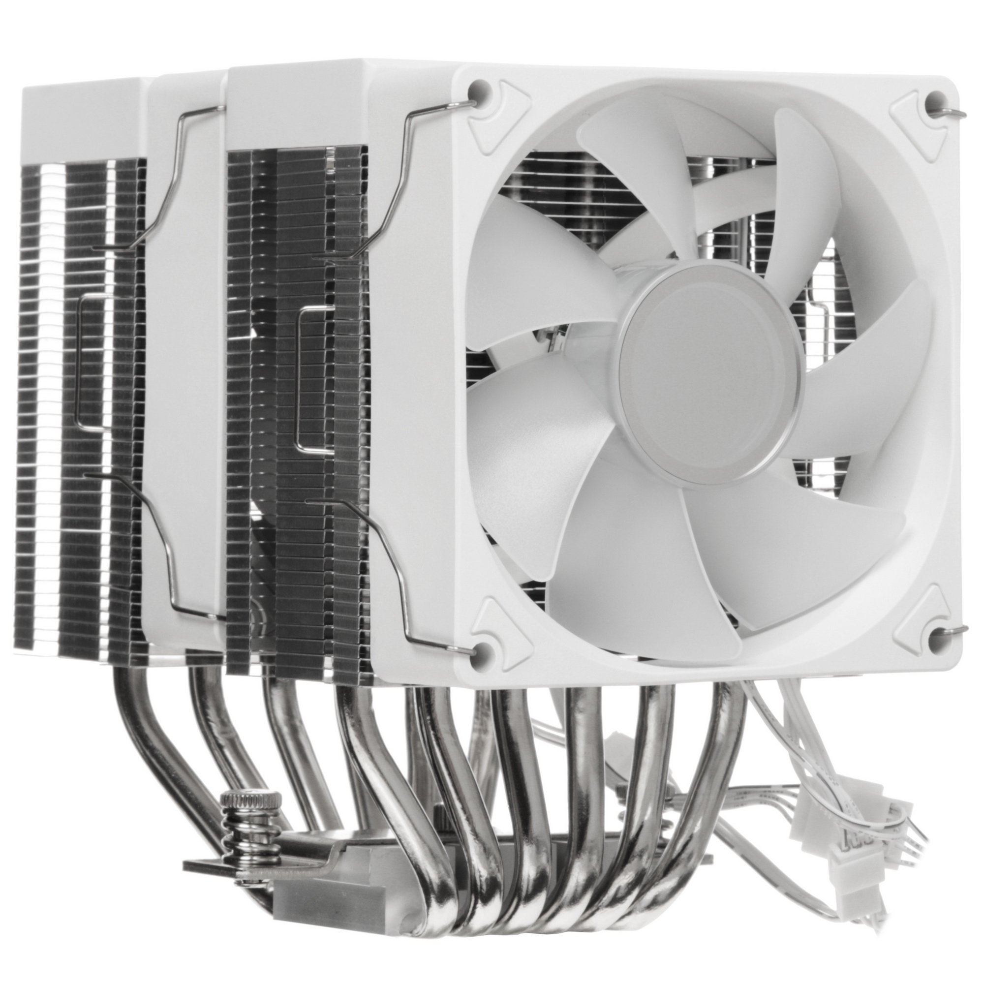 Кулер для процессора JONSBO CR-1400 DV2 White [CR-1400DV2White] укомплектован алюминиево-медной базой, серебристым радиатором большого объема из алюминия и 6 герметичными тепловыми трубками. За счет теплотрубок, образующих в области примыкания к крышке ЦПУ ровную плоскость, выделенное тепло максимально полно передается к поверхности радиатора для рассеивания. Встроенные вентиляторы кулера (2 шт.) размером 92 мм вращаются с частотой 800-2300 об/мин и рассеивают тепловую энергию.