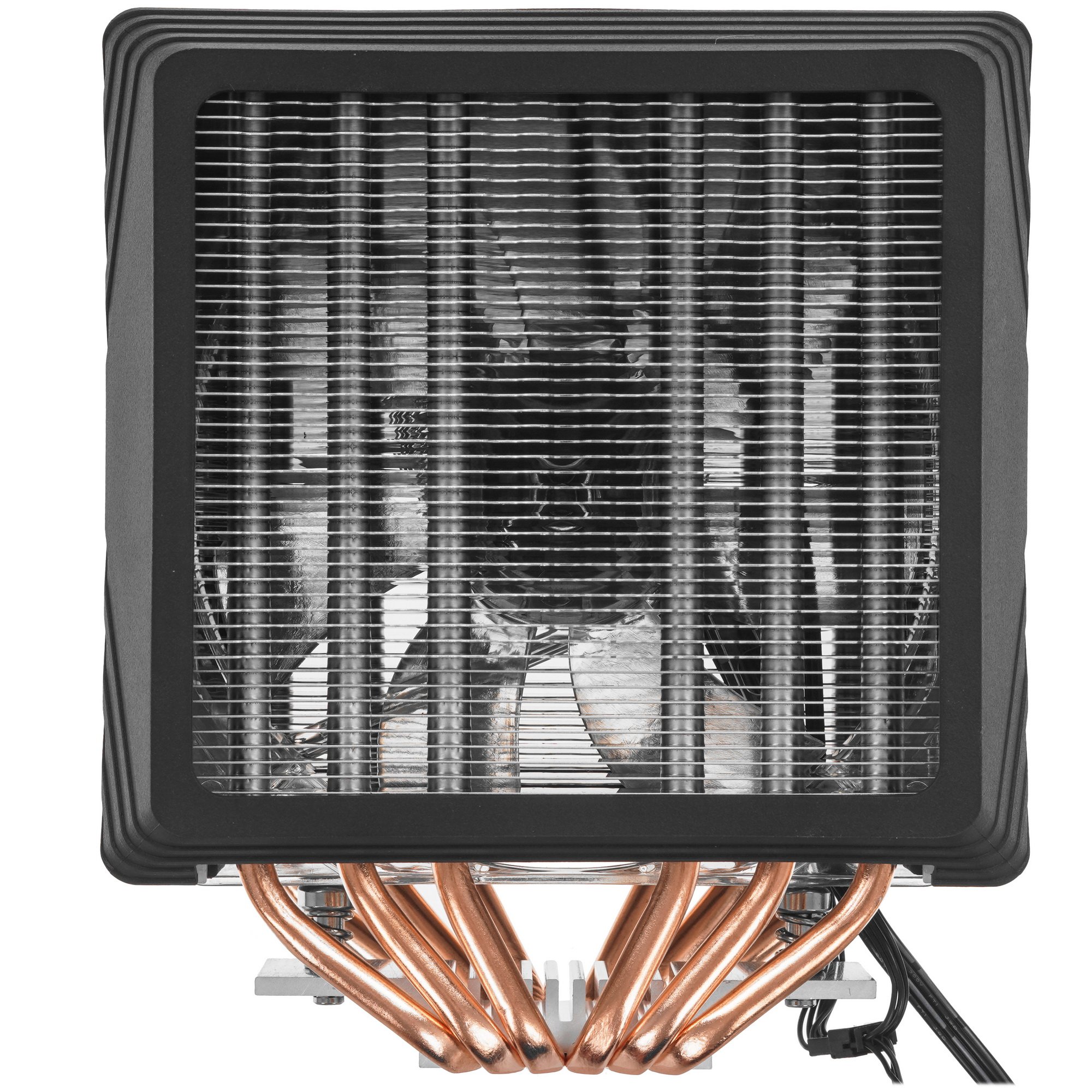 Кулер для процессора Redragon Hodur [71625] отвечает за отвод и рассеивание до 200 Вт тепловой энергии, выделенной центральным процессором системного блока под нагрузкой. В конструкции системы охлаждения использованы серебристый радиатор из алюминия среднего размера, 6 тепловых трубок и алюминиево-медное основание. В зоне примыкания к теплообменной крышке ЦПУ трубки образуют ровную плоскость (прямой контакт) для повышения продуктивности отвода тепла.