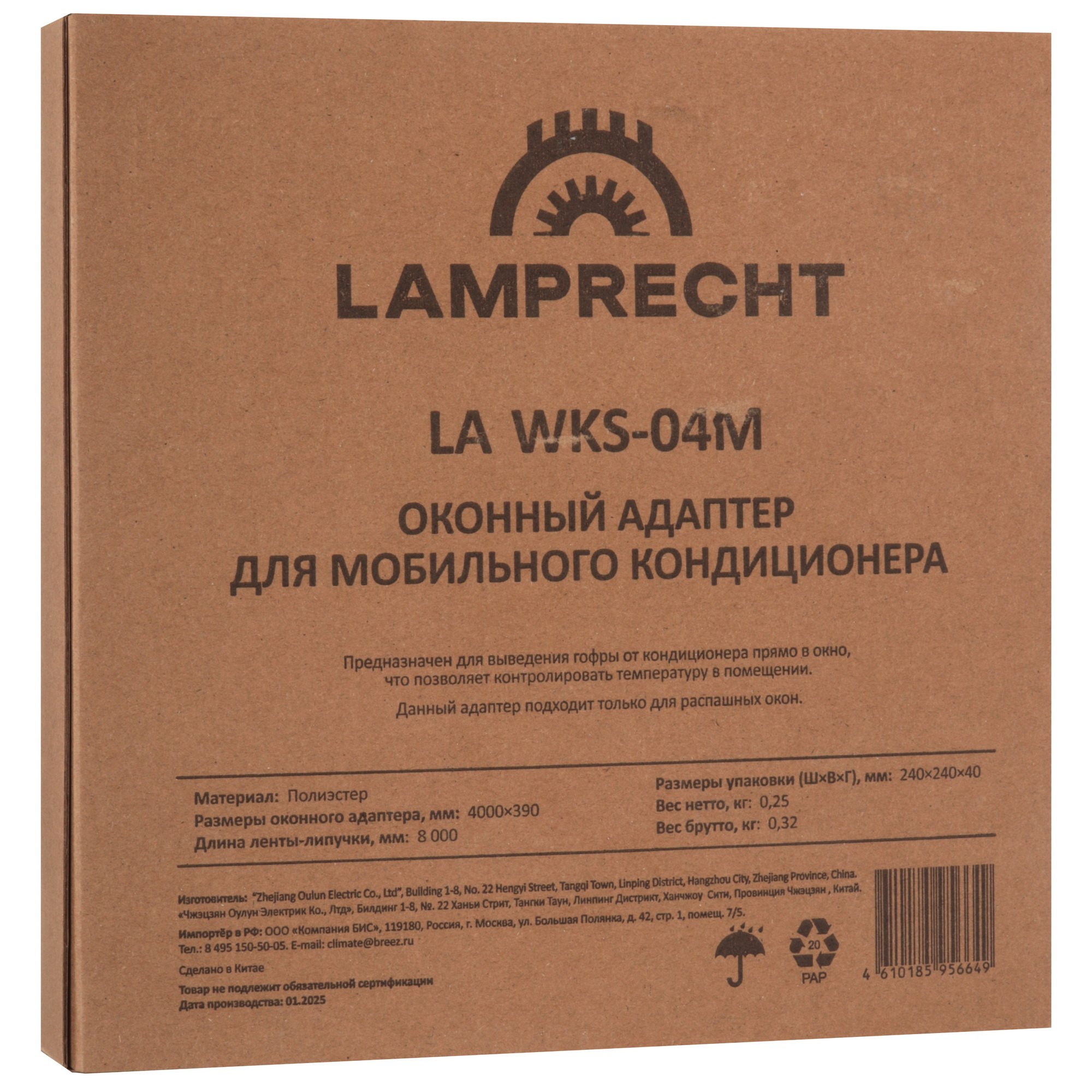 Оконный адаптер Lamprecht LA-WKS-04M предназначен для вывода гофры от кондиционера прямо в окно. Адаптер крепится к раме и створке окна. В комплекте с адаптером поставляется липучка на клеевой основе. Данный адаптер подходит исключительно для распашных окон. Установка оконного адаптера проста. Лента-липучка прикреплена к трем открытым сторонам, при этом сторона, где окно прилегает к раме, не учитывается. Для достижения наилучшего результата рекомендуется предварительно очистить и высушить оконную раму.
