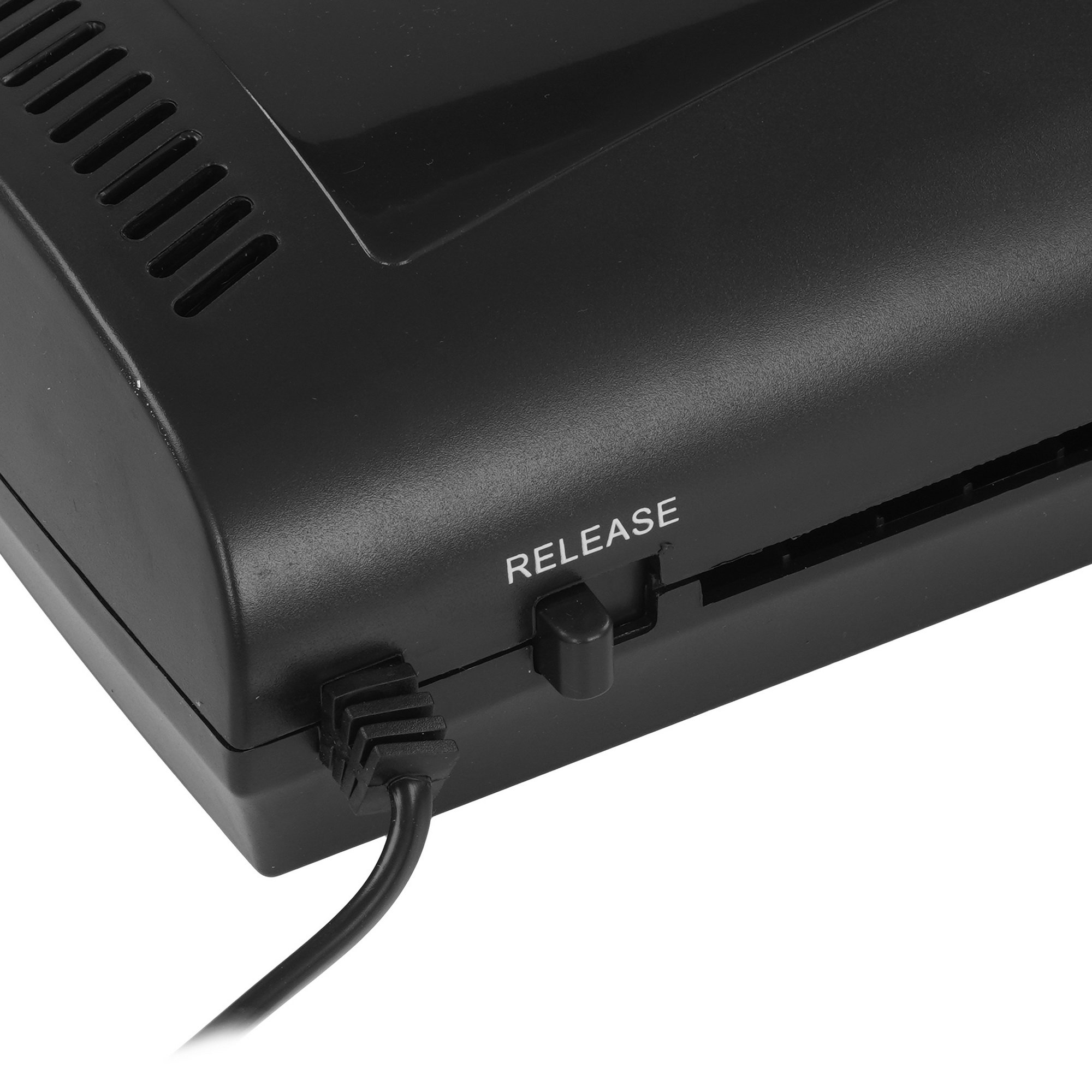 Ламинатор Cactus CS-LAB-M5 черного цвета обеспечит ламинирование документов и фотографий формата А3 и меньше за счет двух валов длиной 340 мм. 2 температурных режима позволят использовать при ламинировании пленку толщиной от 80 мкм до 125 мкм. Благодаря мощности 265 Вт валы устройства после его включения нагреваются за 3 минуты. Для извлечения застрявшего между валами листа бумаги предусмотрена функция освобождения. Скорость ламинирования модели Cactus CS-LAB-M5 достигает 250 мм за минуту непрерывной работы.