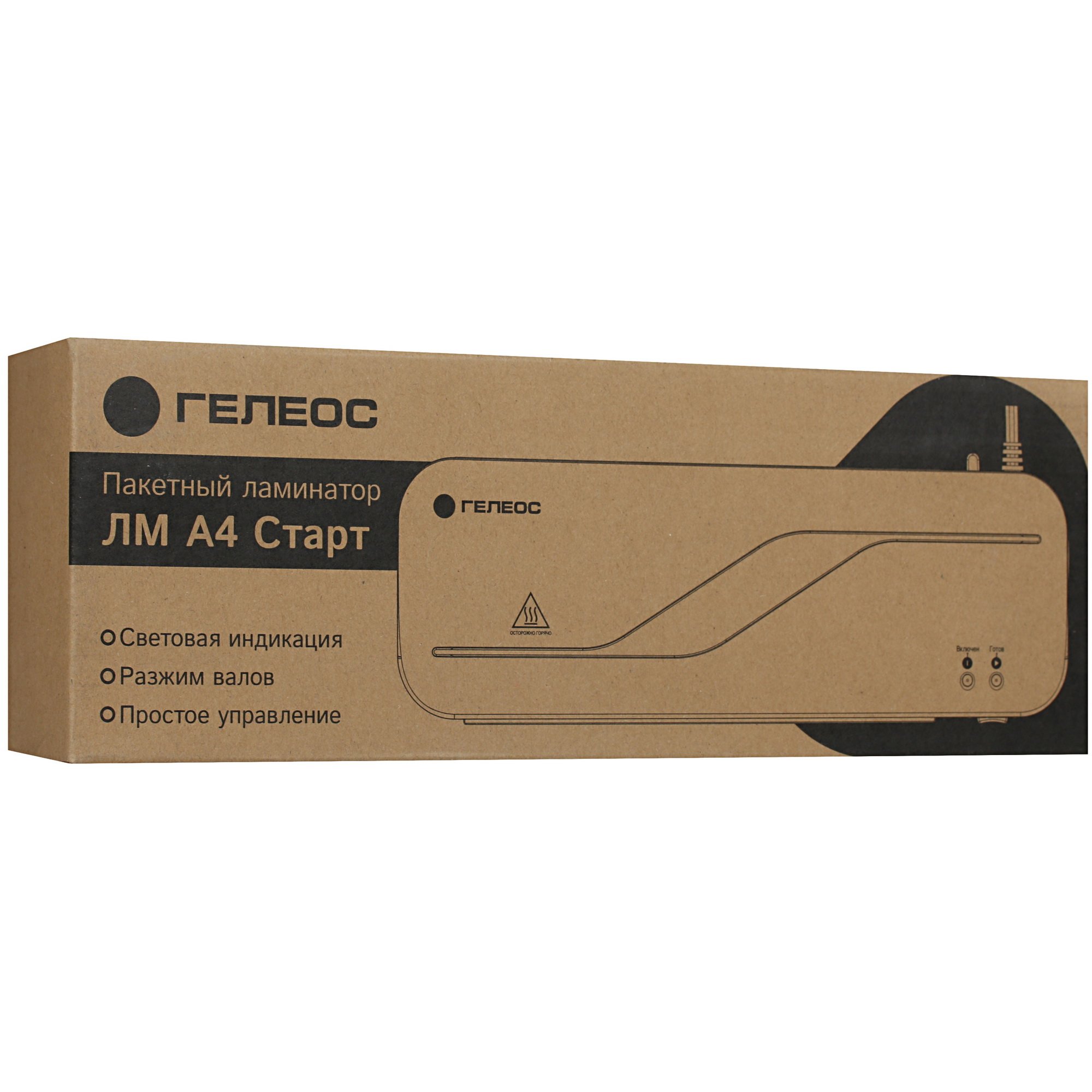 Ламинатор ГЕЛЕОС ЛМ A4 Старт имеет опцию разжима валов, которую можно активировать в случае замятия пленки. Ширина ламинирования составляет 232 мм, а толщина пленки не должна превышать 150 мкм. Устройство способно работать с документами толщиной до 0.6 мм.