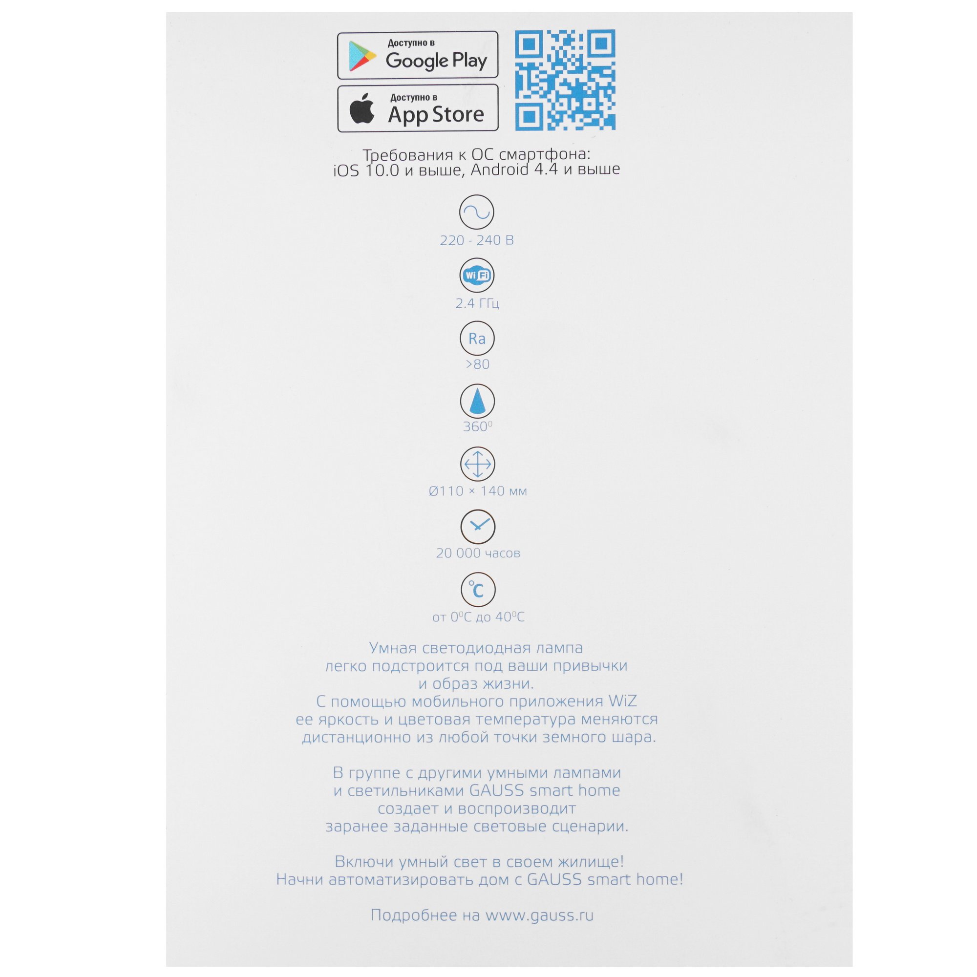 Лампа филаментная Gauss Smart Home Filament Diamond с потребляемой мощностью 6.5 Вт оснащается прозрачным рассеивателем и работает от однофазной бытовой сети. Благодаря минимальному уровню пульсации света лампочка при работе не утомляет глаза пользователя.