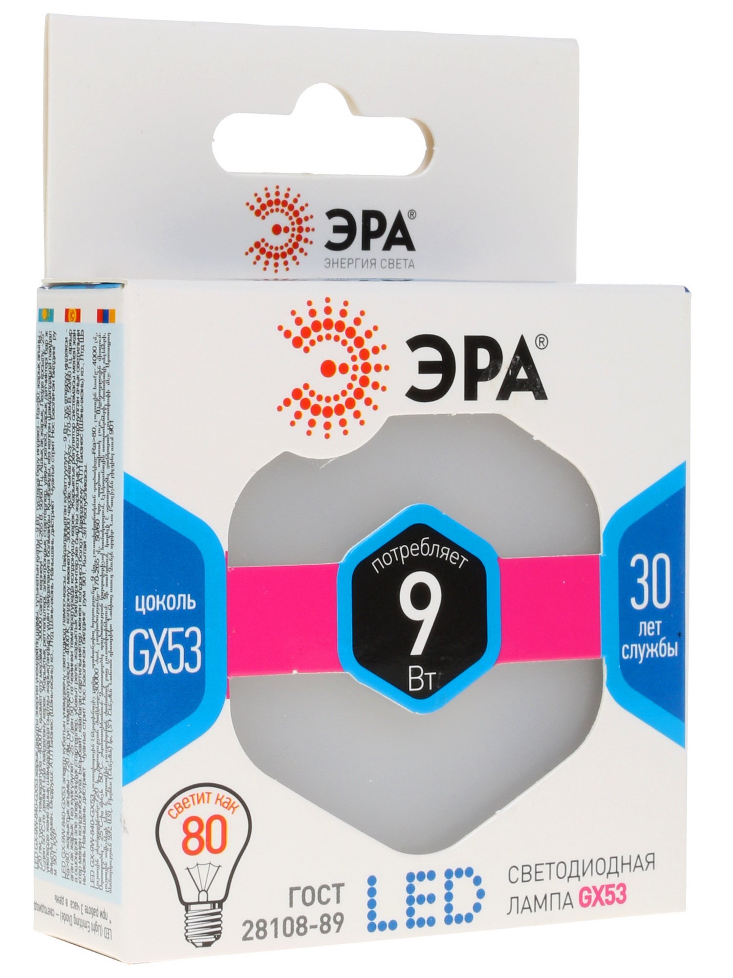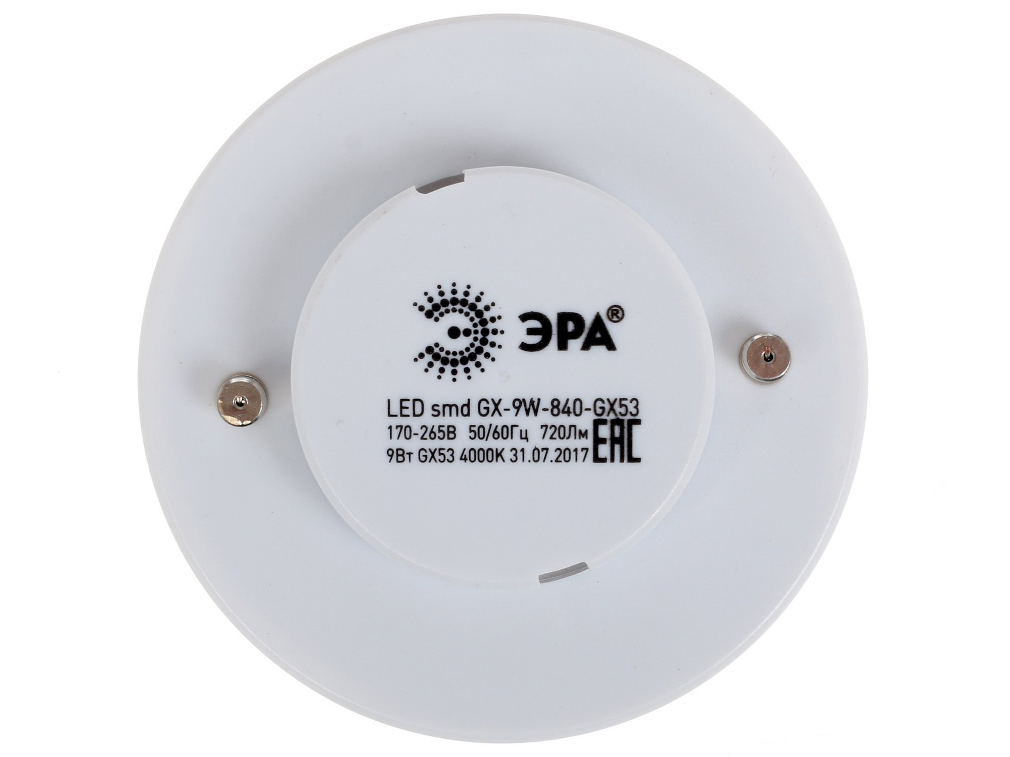 Показатель цветовой температуры лампы Эра LED GX53/9w/840 достигает 4000 K, поэтому свечение лампы холодное, что лучше всего подходит для уличного освещения или же для больших помещений. Лампа излучает больше света, ведь ее световой поток равен 720 Лм, поэтому такие варианты наиболее подходят для нее. Питание изделия осуществляется от сети 170-265 В.