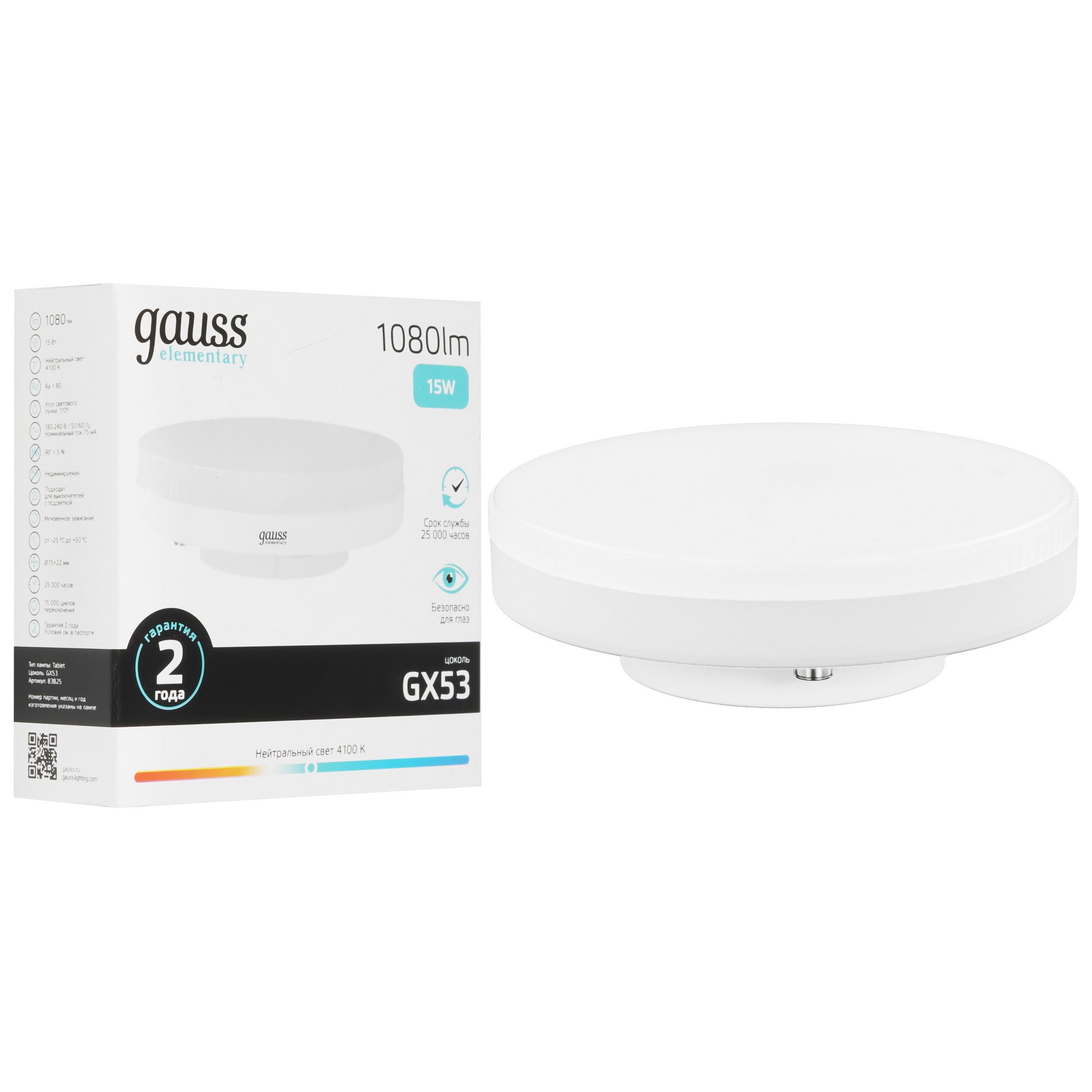 Лампа светодиодная LED Gauss Elementary GX53 15W 1080lm 4100K