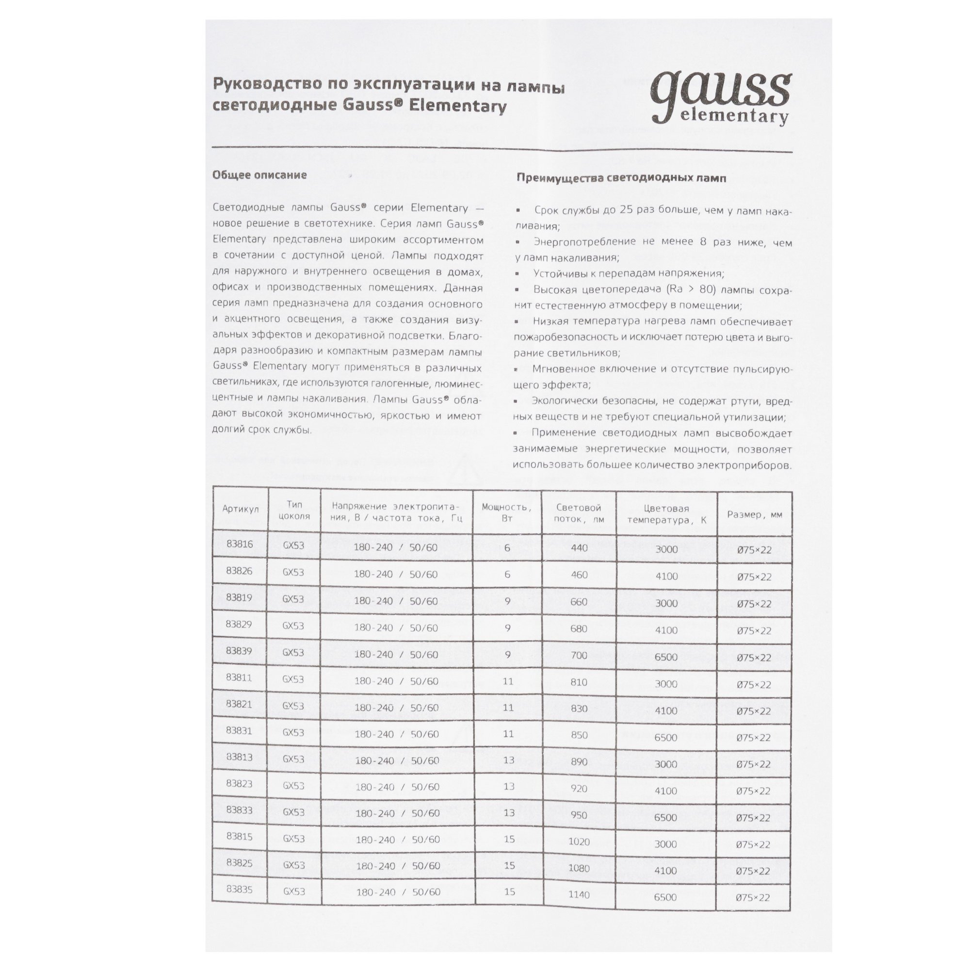 Энергопотребление лампы светодиодной Gauss Elementary составляет 15 Вт. Модель генерирует световой поток 1080 лм. Показатель эквивалентен светоотдаче 125-ваттной лампы накаливания.