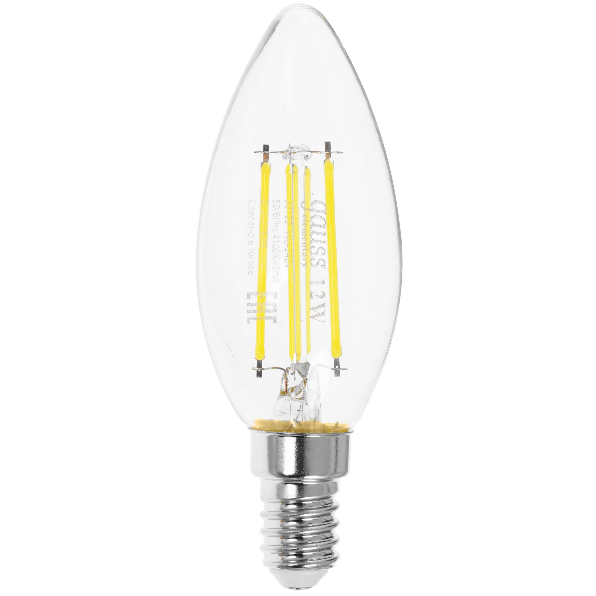 Лампа светодиодная филаментная Gauss Filament 12Вт цок.:E14 свеча св.свеч.бел.нейт. (упак.:10шт)
