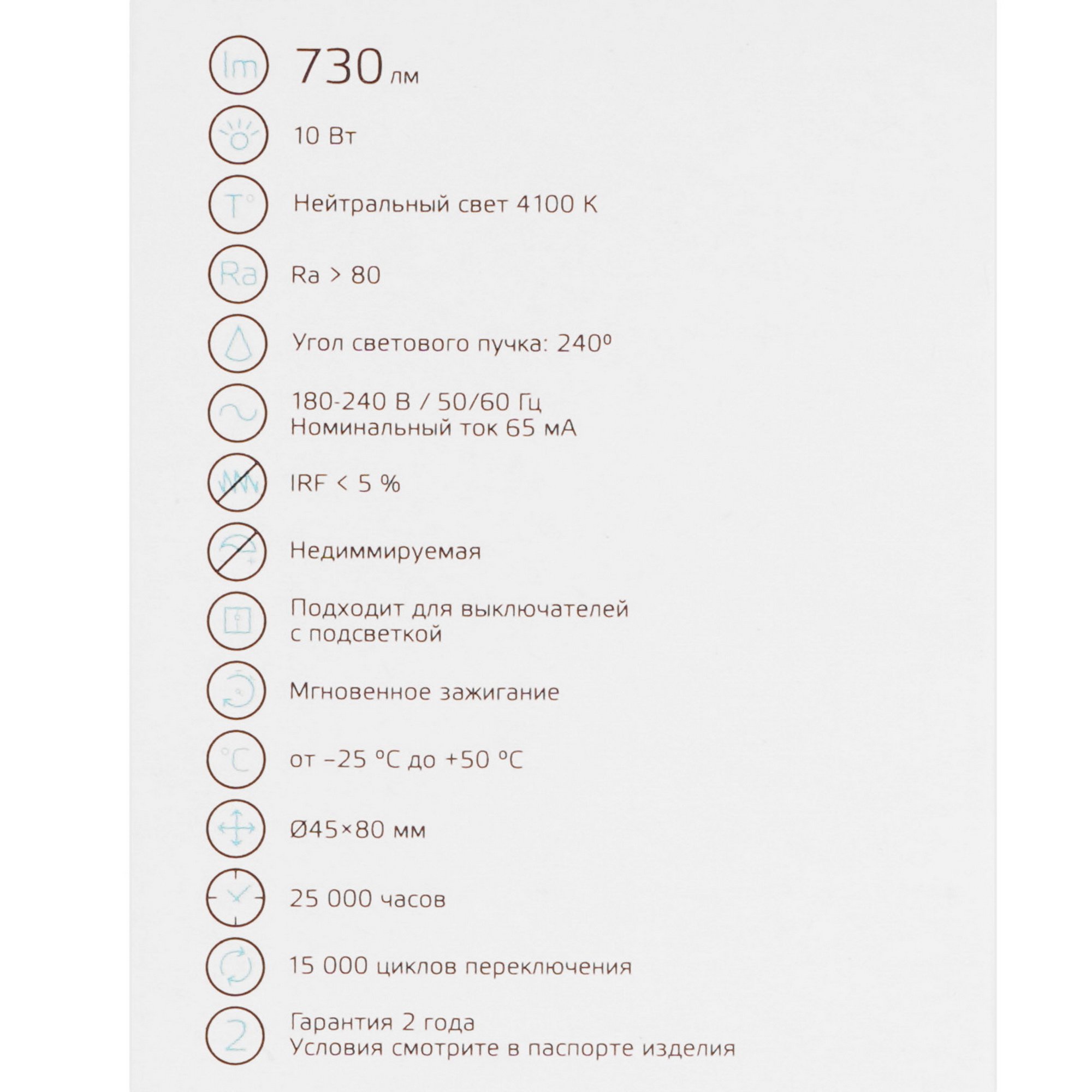 Лампа светодиодная LED Gauss 10Вт E14 220В 4100К Elementary шар 53120