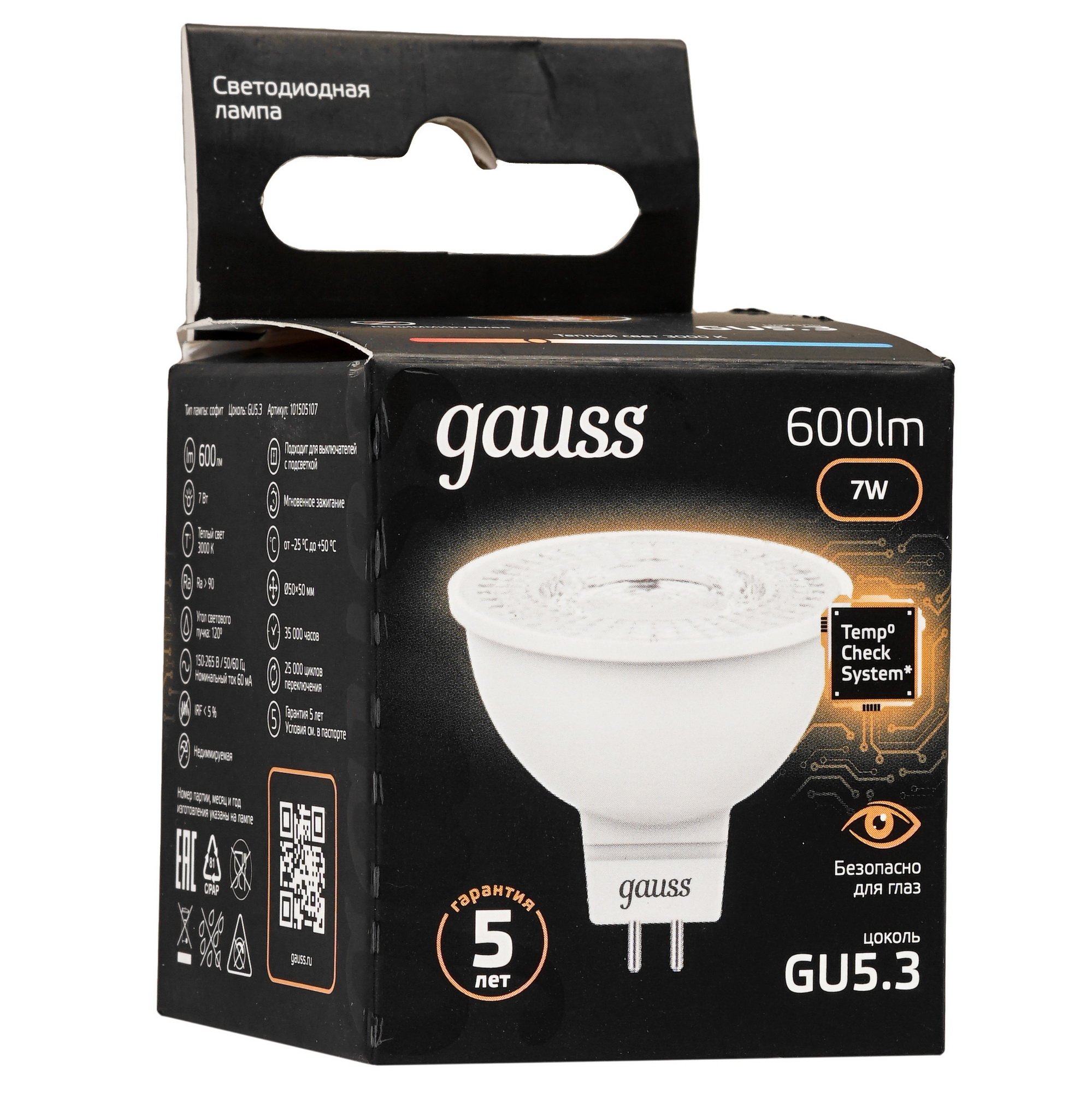 Лампа светодиодная Gauss LED MR16 GU5.3 7W 600lm 2700K 1/10/100