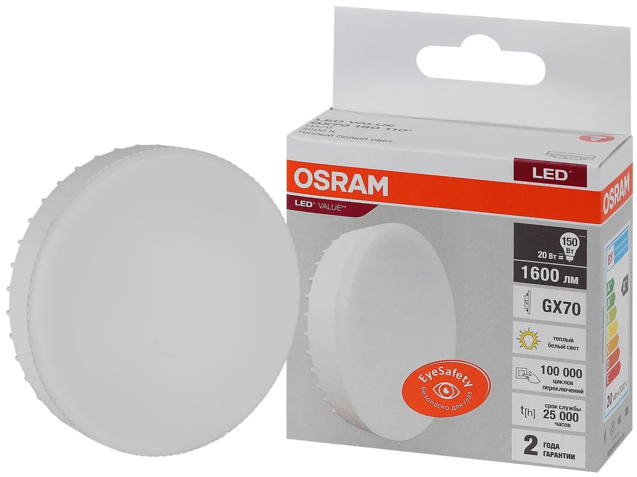 Лампа с цоколем GX53 имеет мощность 8 Вт и обеспечивает тёплый белый свет с цветовой температурой 3000 К. Тип колбы у неё GX, а световой поток составляет 640 лм. Лампа оснащена матовым рассеивателем и эквивалентна по мощности лампе накаливания на 60 Вт. Срок службы лампы составляет 25000 часов. Длина лампы — 28 мм, и она не оборудована филаментом. Индекс цветопередачи лампы превышает 80%, а угол светового пучка равен 110°. Лампа рассчитана на напряжение в 220 В.