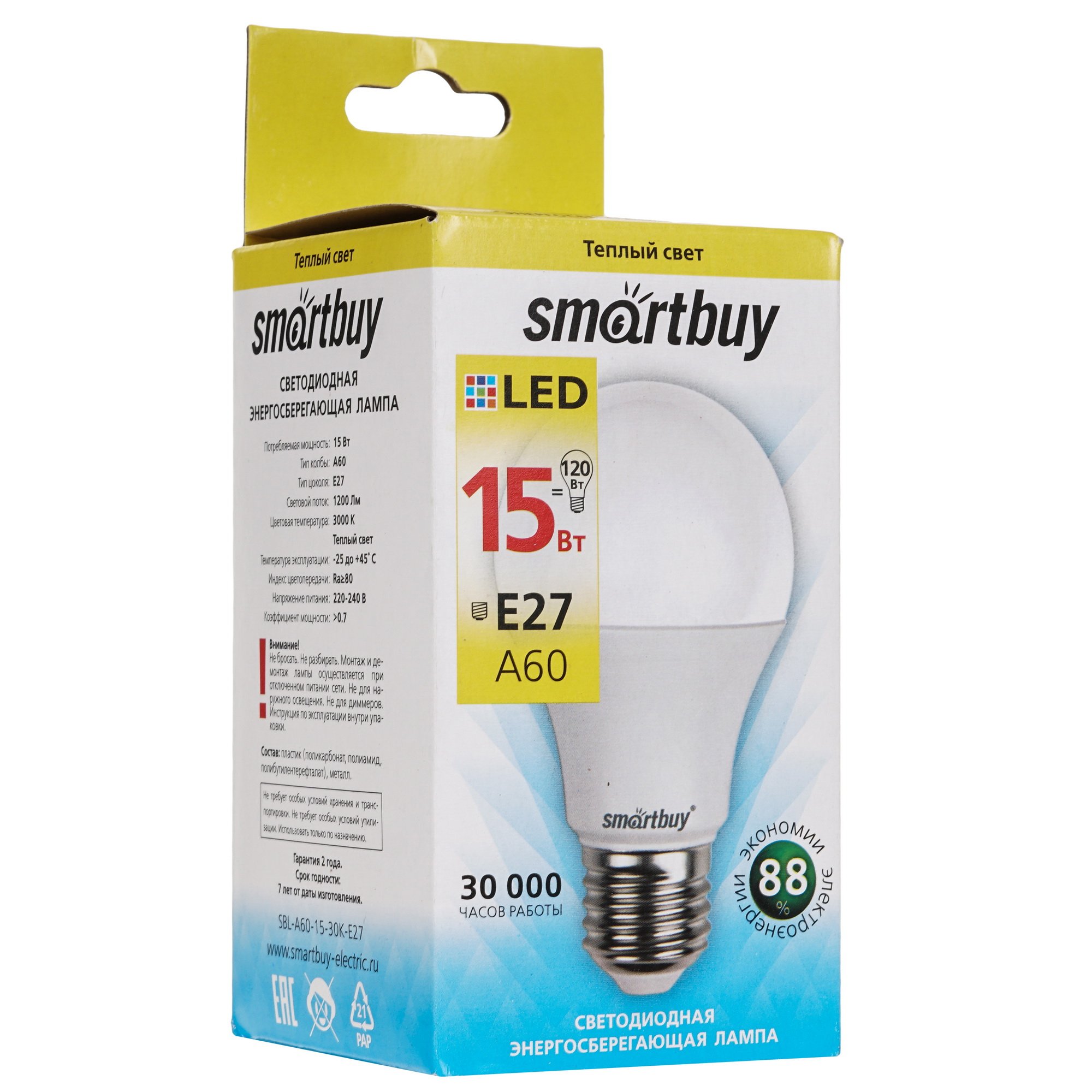 Светодиодная (LED) Лампа Smartbuy-A60-15W/3000/E27