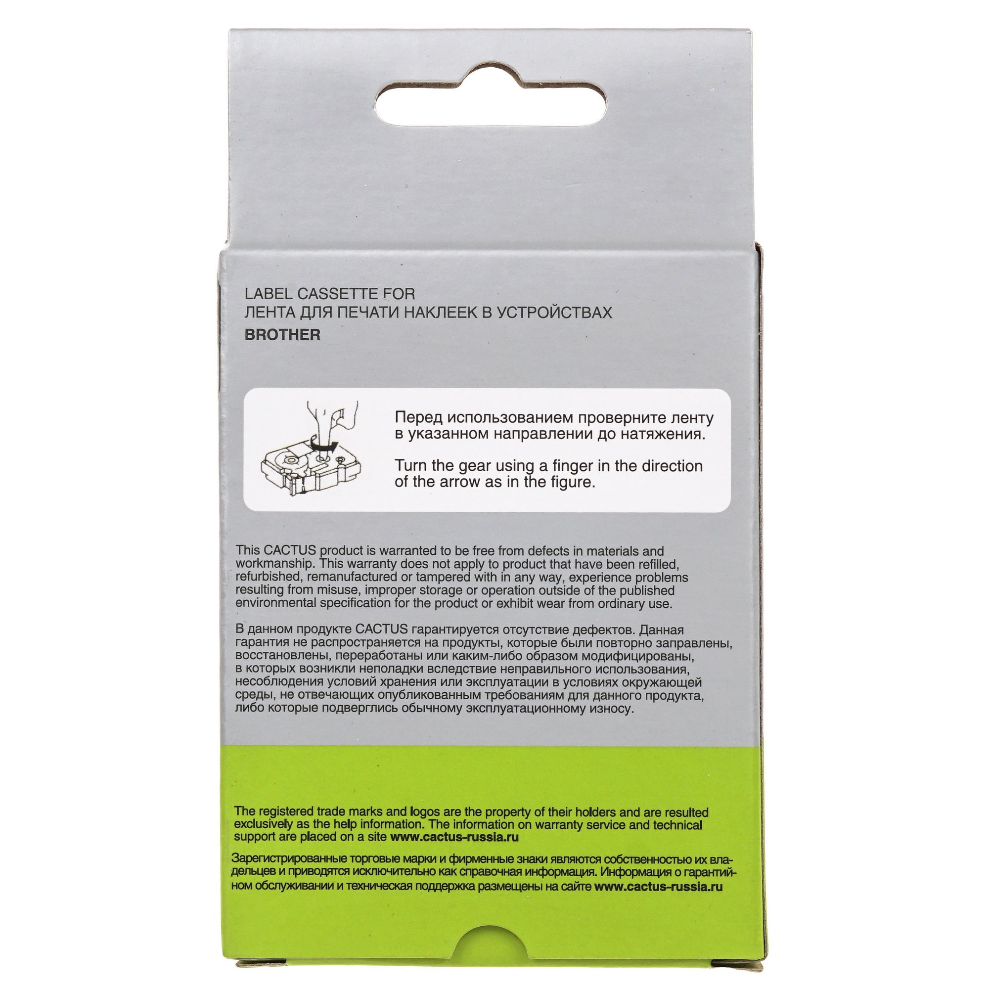 Картридж Cactus CS-TZ631 предназначен для печати на ленточных принтерах Brother. Это ламинированная лента длиной 8 м и шириной 1.2 см. То есть если печатать маркировочные наклейки длиной по 5 см, то получится 160 штук из одного картриджа. Наклейки могут использоваться на пластиковых, металлических и деревянных поверхностях.