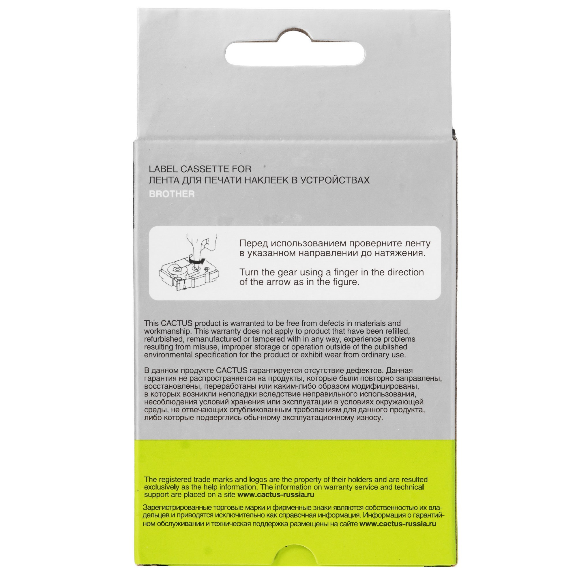 Картридж Cactus CS-TZ641 предназначен для печати на ленточных принтерах Brother. Это ламинированная лента длиной 8 м и шириной 1.8 см. То есть если печатать маркировочные наклейки длиной по 5 см, то получится 160 штук из одного картриджа. Наклейки могут использоваться на пластиковых, металлических и деревянных поверхностях.