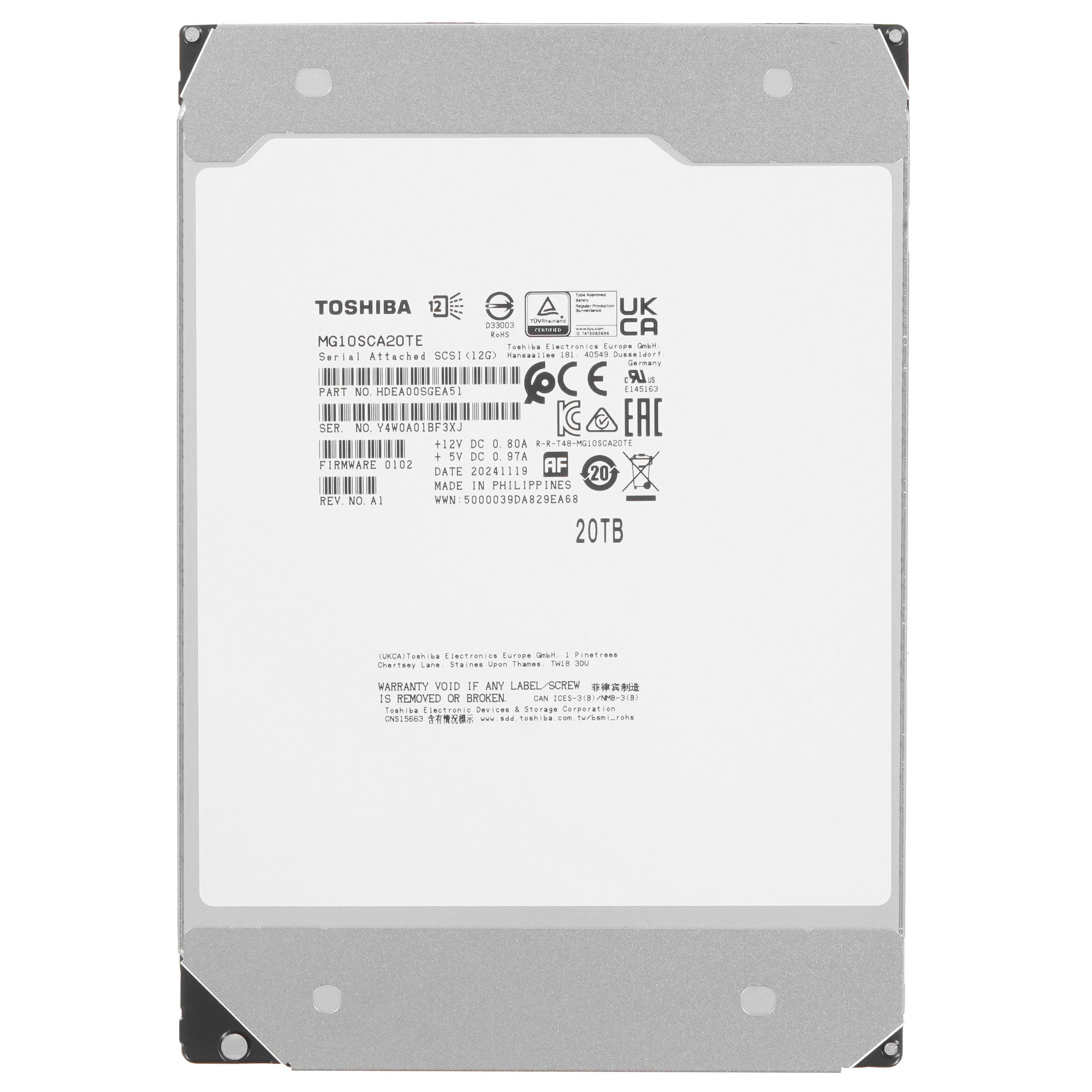 Жесткий диск Toshiba 20Tb Server (MG10SCA20TE) SAS, 7200 rpm, 512Mb buffer, 3.5"