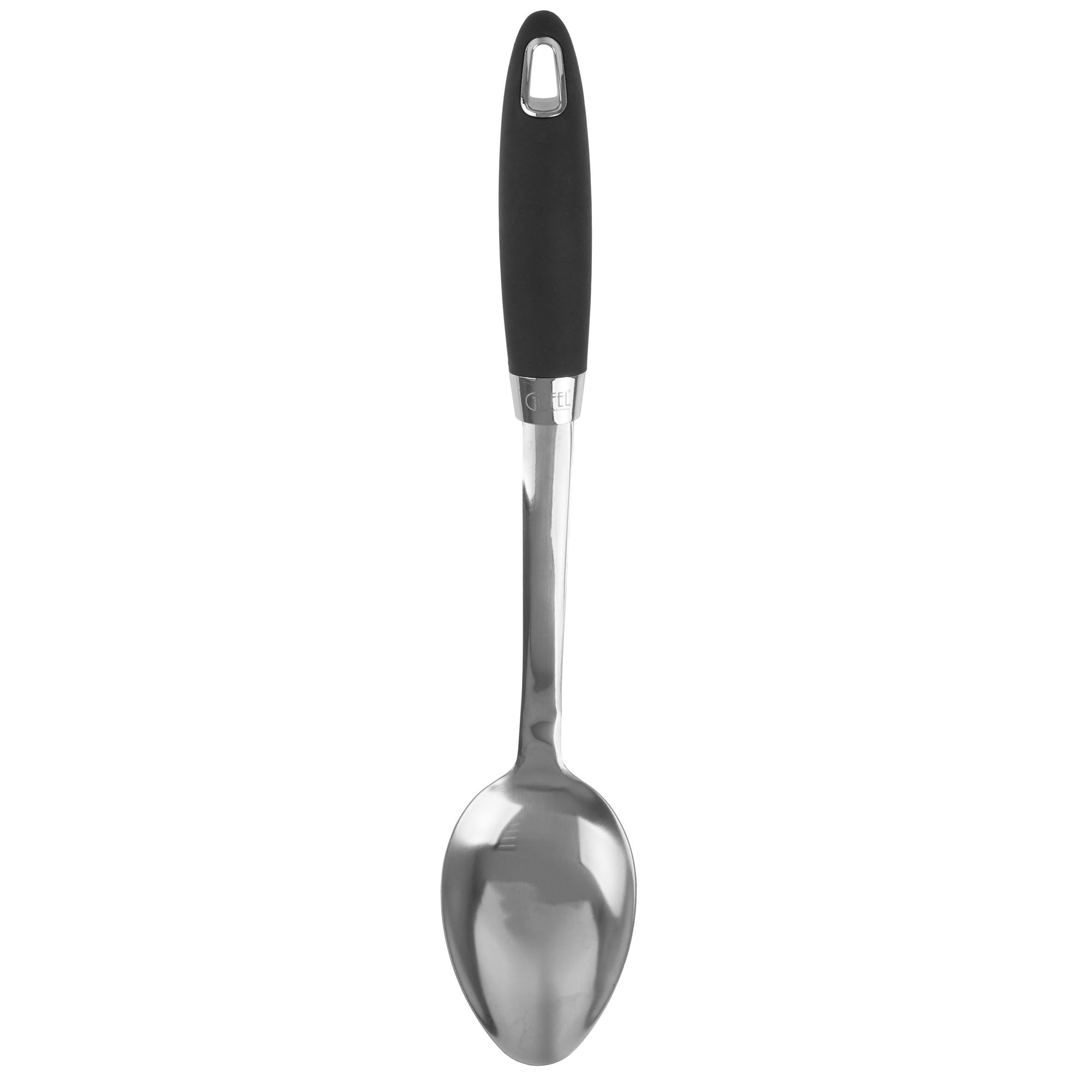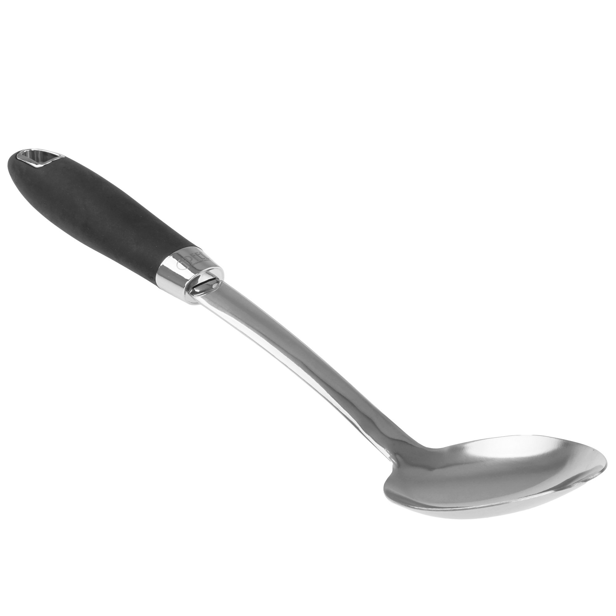 Gipfel Montego 9311 оснащена удобной для удержания черной пластиковой ручкой. Есть отверстие для подвешивания на крюк или специальный держатель рядом с рабочей зоной. Такой способ хранения ускоряет высушивание чистой ложки, исключает ее контакт с поверхностями для защиты от загрязнений, упрощает доступ во время сервировки.