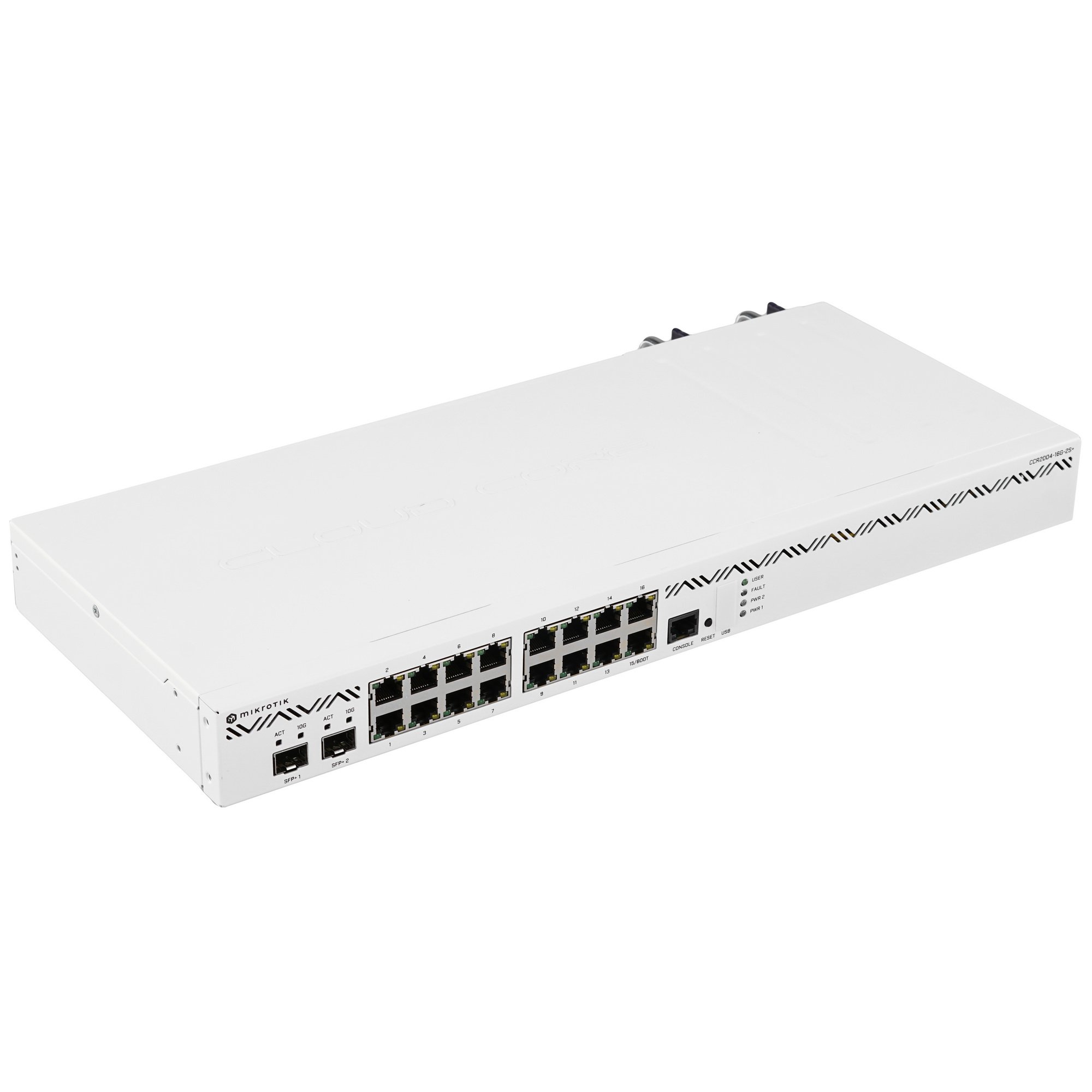 Маршрутизатор Mikrotik CCR2004-16G-2S+ – комплексное решение для малого и среднего бизнеса. Модель имеет 16 гигабитных портов Ethernet и два 10-гигабитных порта SFP. Назначение первых – внутрисетевые коммуникации. Порты SFP служат для организации высокоскоростных исходящих и входящих каналов связи. Маршрутизатор может использоваться в качестве моста.