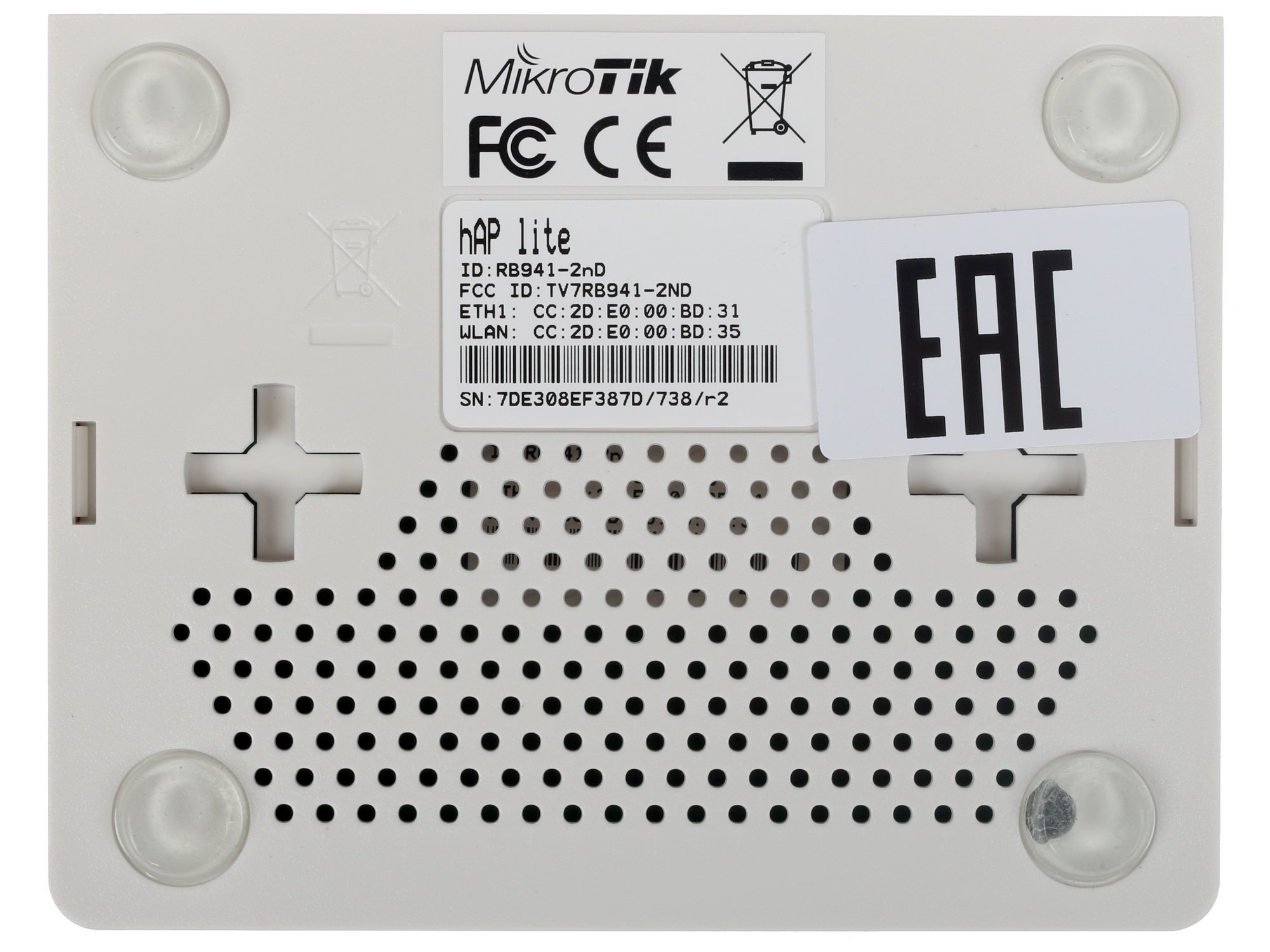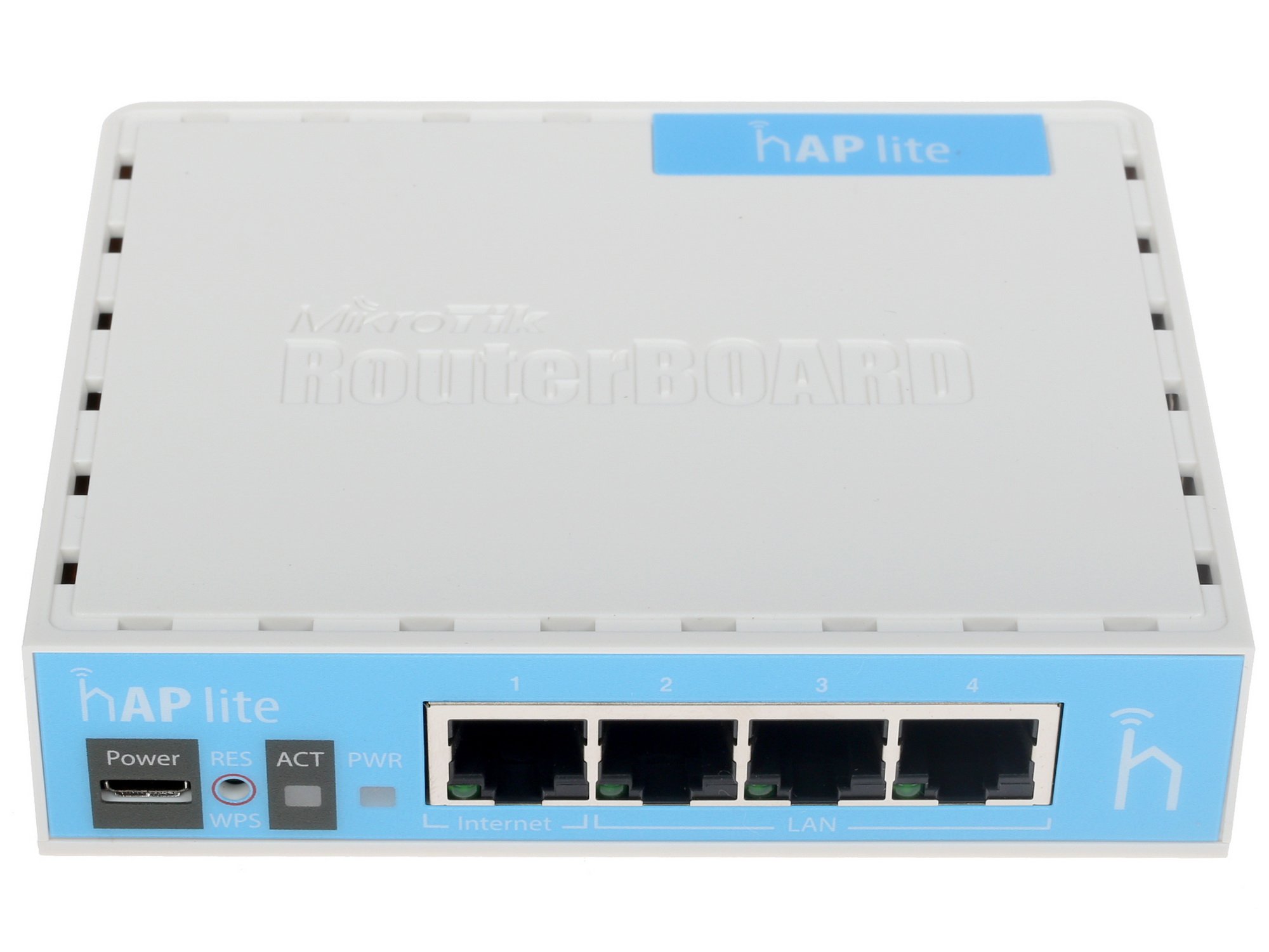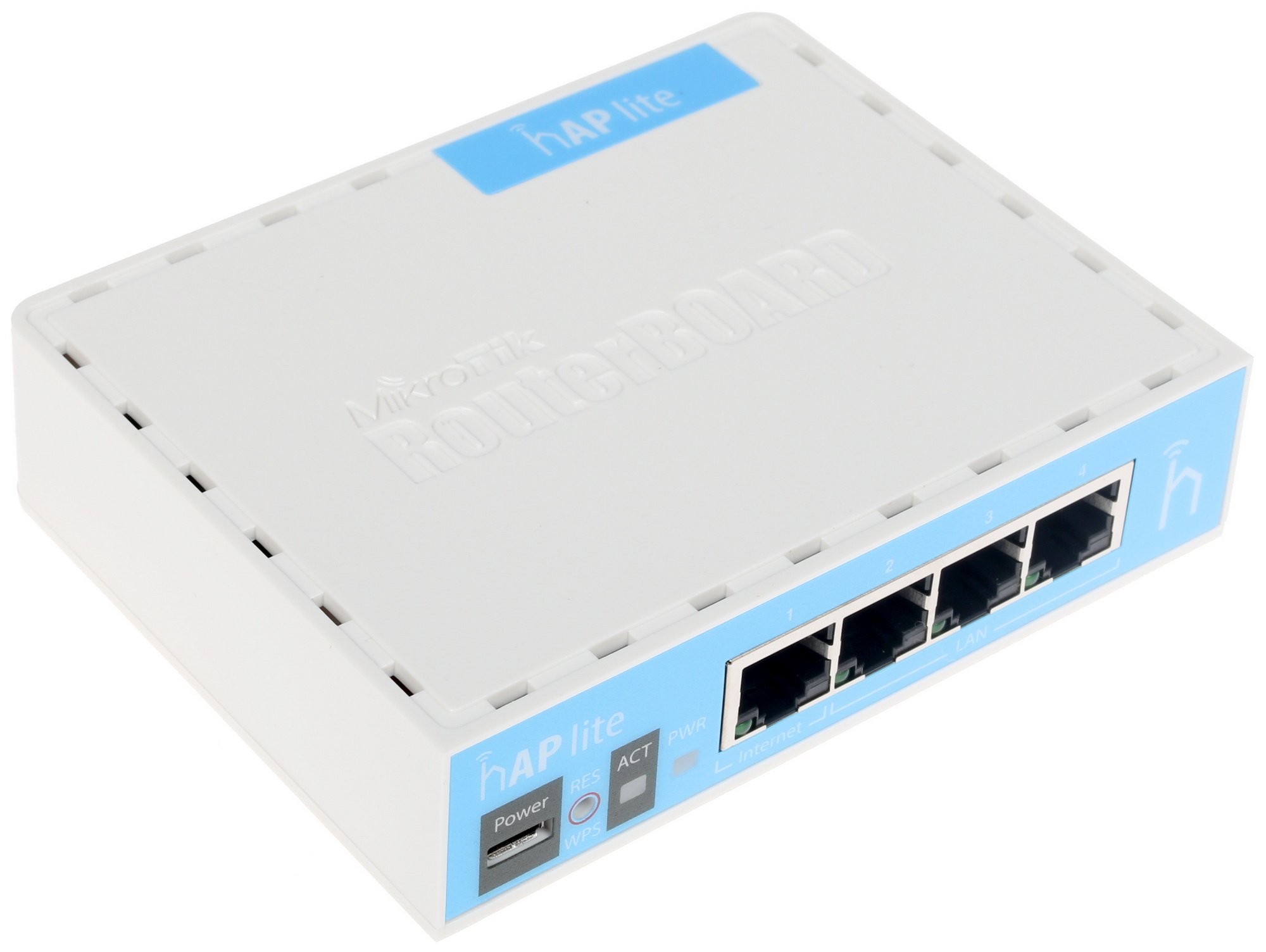 Mikrotik hAP lite способен поддерживать несколько режимов работы (мост, гостевая сеть, мульти-SSID, повторитель, инфраструктура). 4 порта Ethernet (LAN) обеспечивают скорость передачи данных 10/100 Мбит/с, а беспроводная сеть – до 300 Мбит/с. Питание осуществляется от бытовой электросети, в комплект поставки входит адаптер.