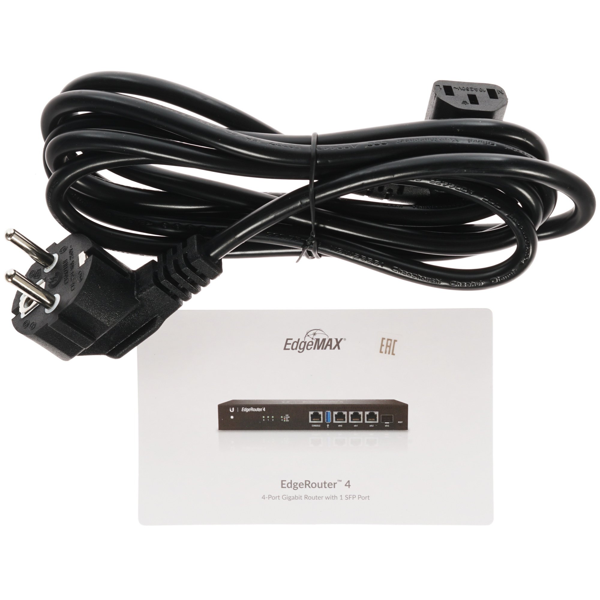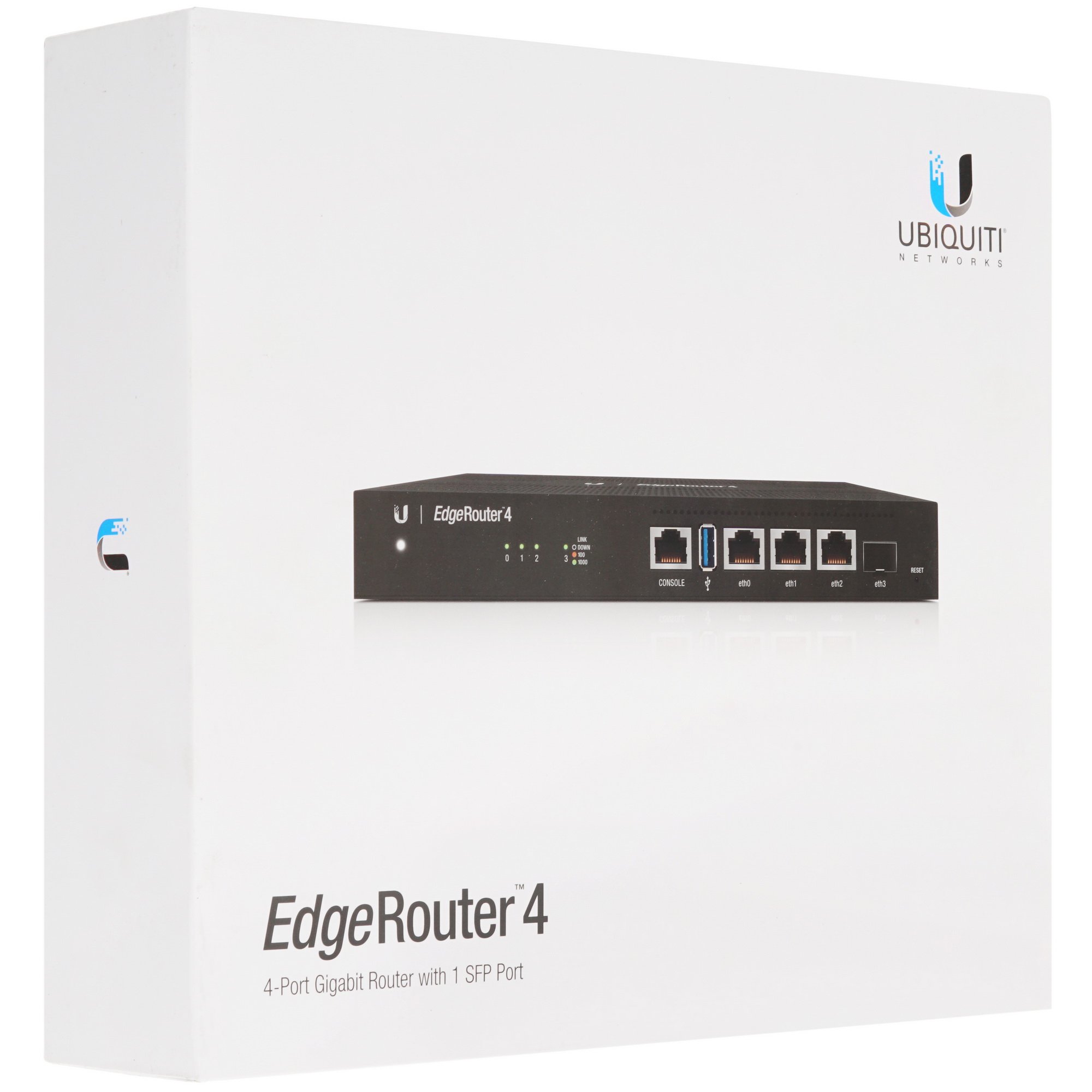 Маршрутизатор Ubiquiti EdgeRouter ER-4 выполнен в прочном и компактном корпусе. Для подключения клиентских устройств предусмотрено 3 порта LAN с поддержкой PoE и 1 SFP-выход с пропускной способностью до 1000 Мбит/с. Для обеспечения высокой производительности сети и безопасности соединения модель использует различные протоколы и технологии, а также поддерживает фильтрацию трафика по IP- или MAC-адресу. Настройка и администрирование может осуществляться через консольный порт, веб-интерфейс или Telnet. Помимо этого поддерживается мониторинг сети через мобильное приложение UISP (formerly UNMS) Mobile для устройств на базе iOS и Android. Комплект поставки включает в себя сетевой адаптер питания, а также диск с ПО.
