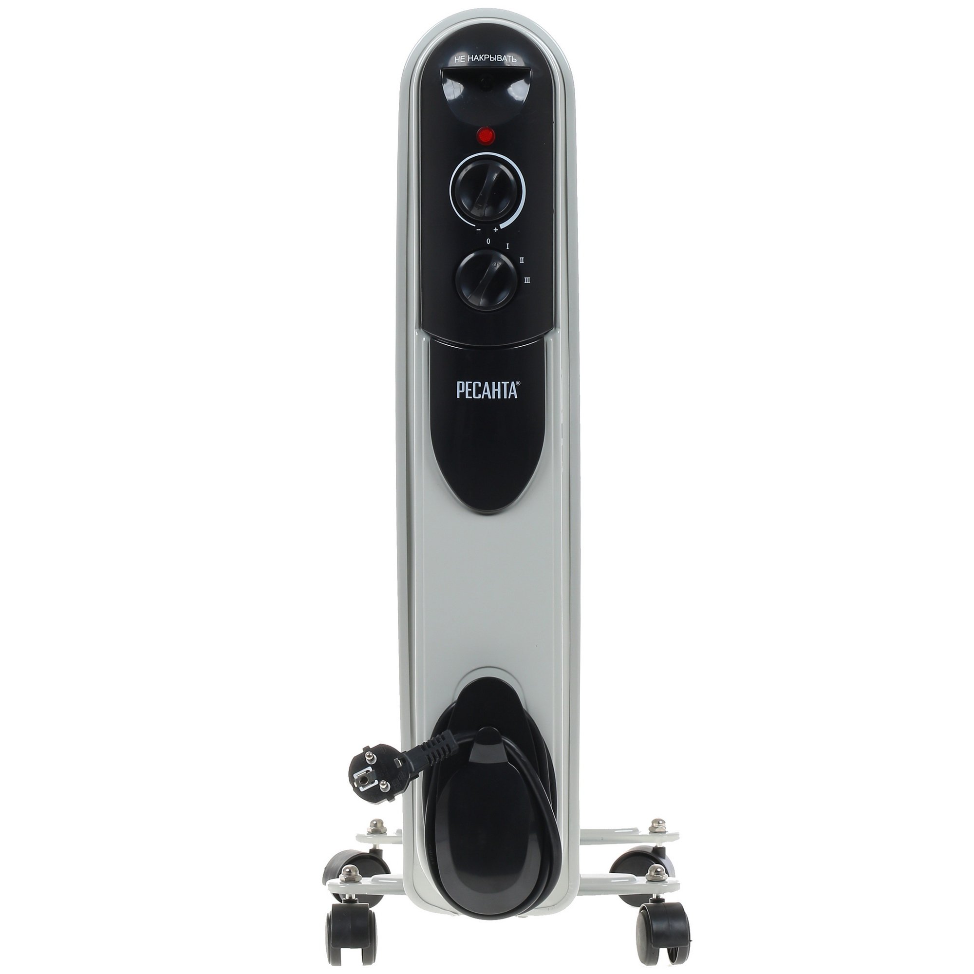 Для управления масляным радиатором Ресанта ОМПТ-12Н на его корпусе размещены поворотные переключатели и индикатор рабочего состояния прибора. Благодаря им вы сможете выбрать мощность нагрева из 3 представленных режимов. Максимальная мощность энергопотребления у радиатора составляет 2500 Вт. Регулируемый термостат обеспечит экономию электричества, автоматически отключая и включая радиатор. Для безопасного использования прибора предусмотрена функция защиты от перегрева, позволяющая отключать радиатор в случае сильного нагрева.
