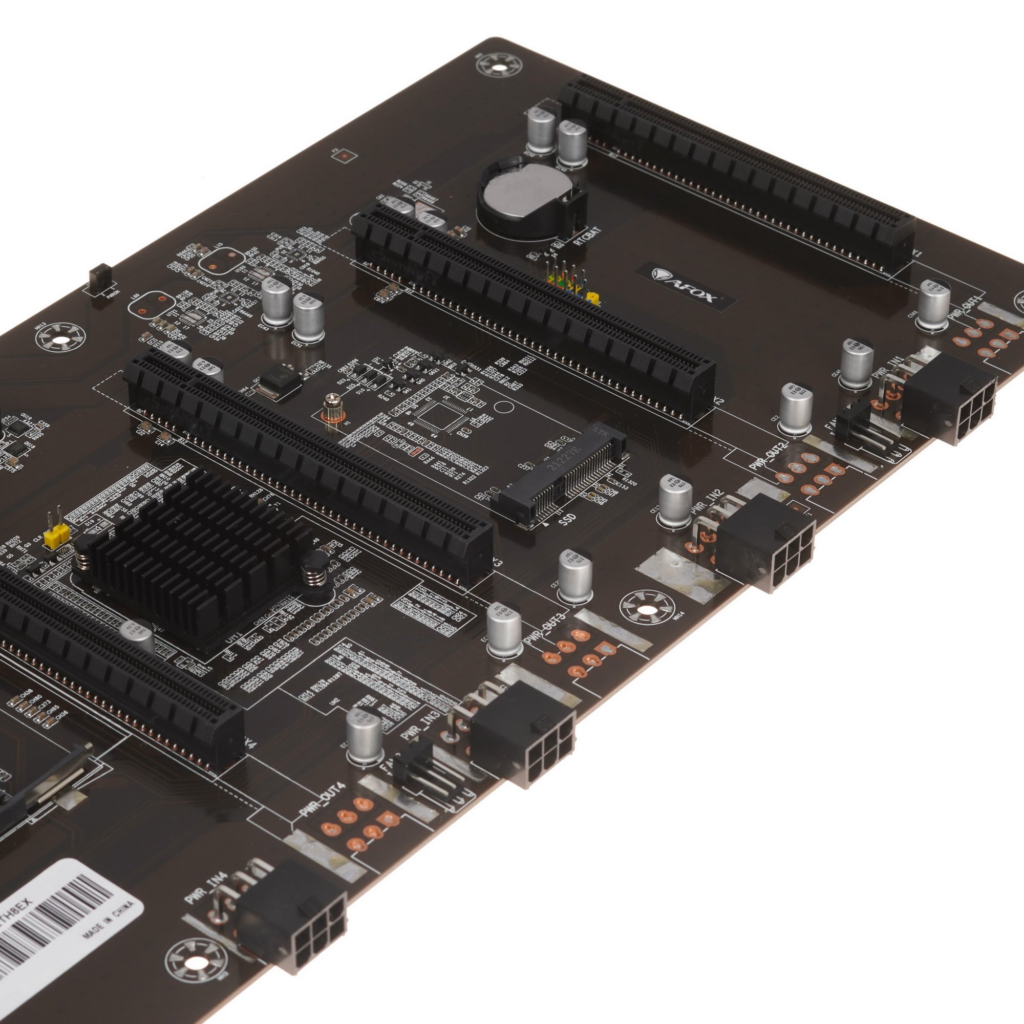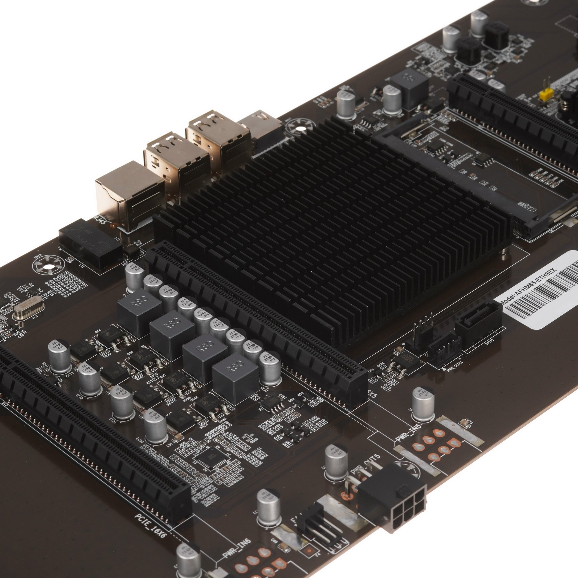 Материнская плата AFOX AFHM65-ETH8EX с процессором Intel Celeron 847 ориентирована на использование в составе рабочих станций и систем майнинга. Она имеет размеры 170x570 мм. В плате предлагаются 8 слотов расширения PCI-E x16. Для установки модуля оперативной памяти стандарта DDR3L объемом не более 8 ГБ предлагается 1 слот.