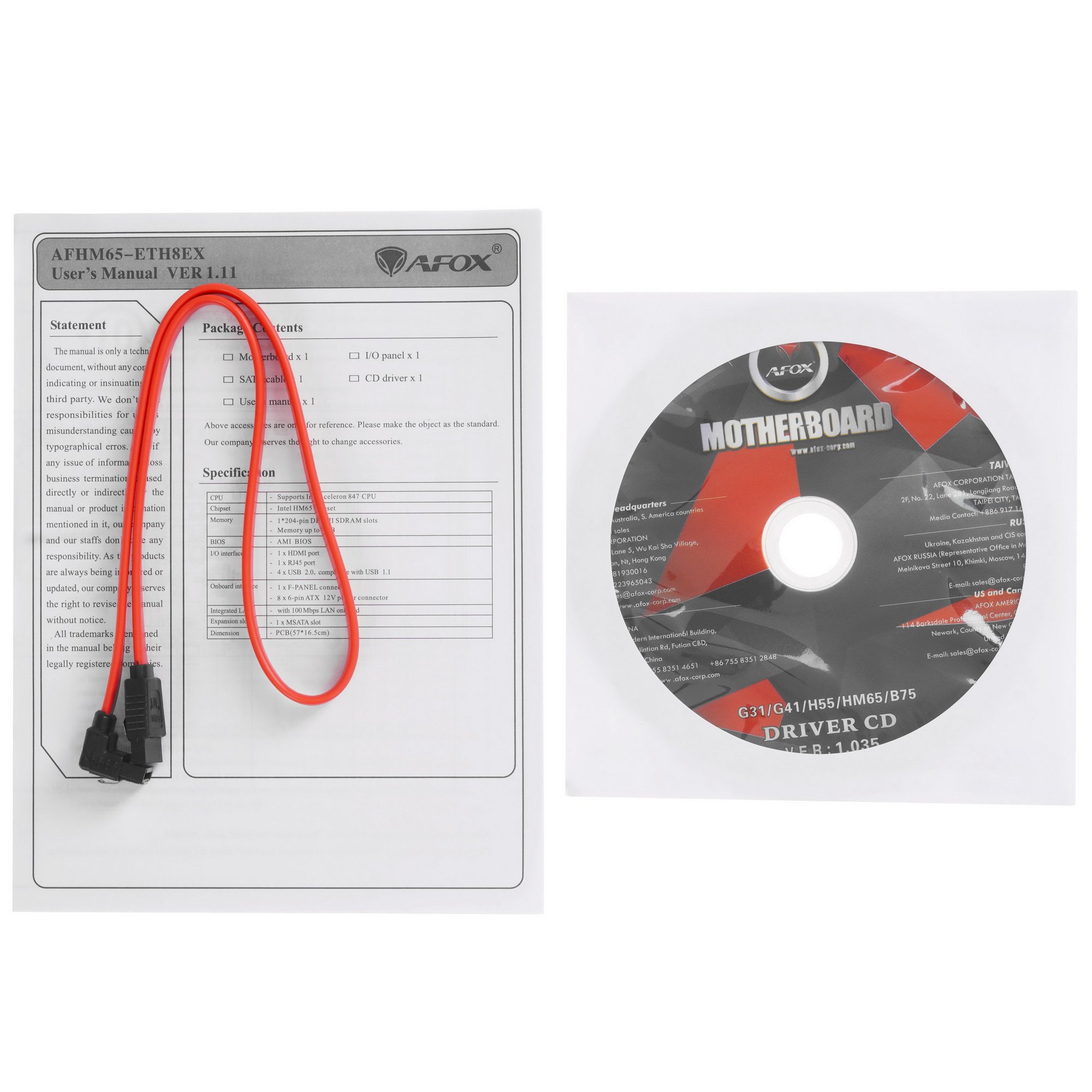 Материнская плата с процессором AFOX AFHM65-ETH8EX, Intel Celeron 847, Intel HM65, 1xDDR3L, 1xSATA, 1xmini-SATA, 8xPCIe 2.0 x16, 1xHDMI, 1x 100Mb LAN, 4xUSB 2.0, проприетарный