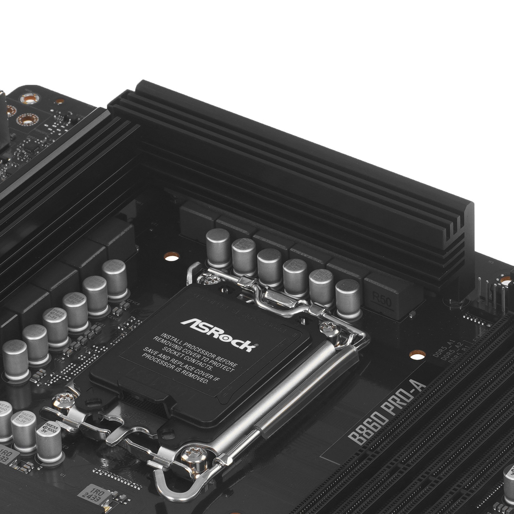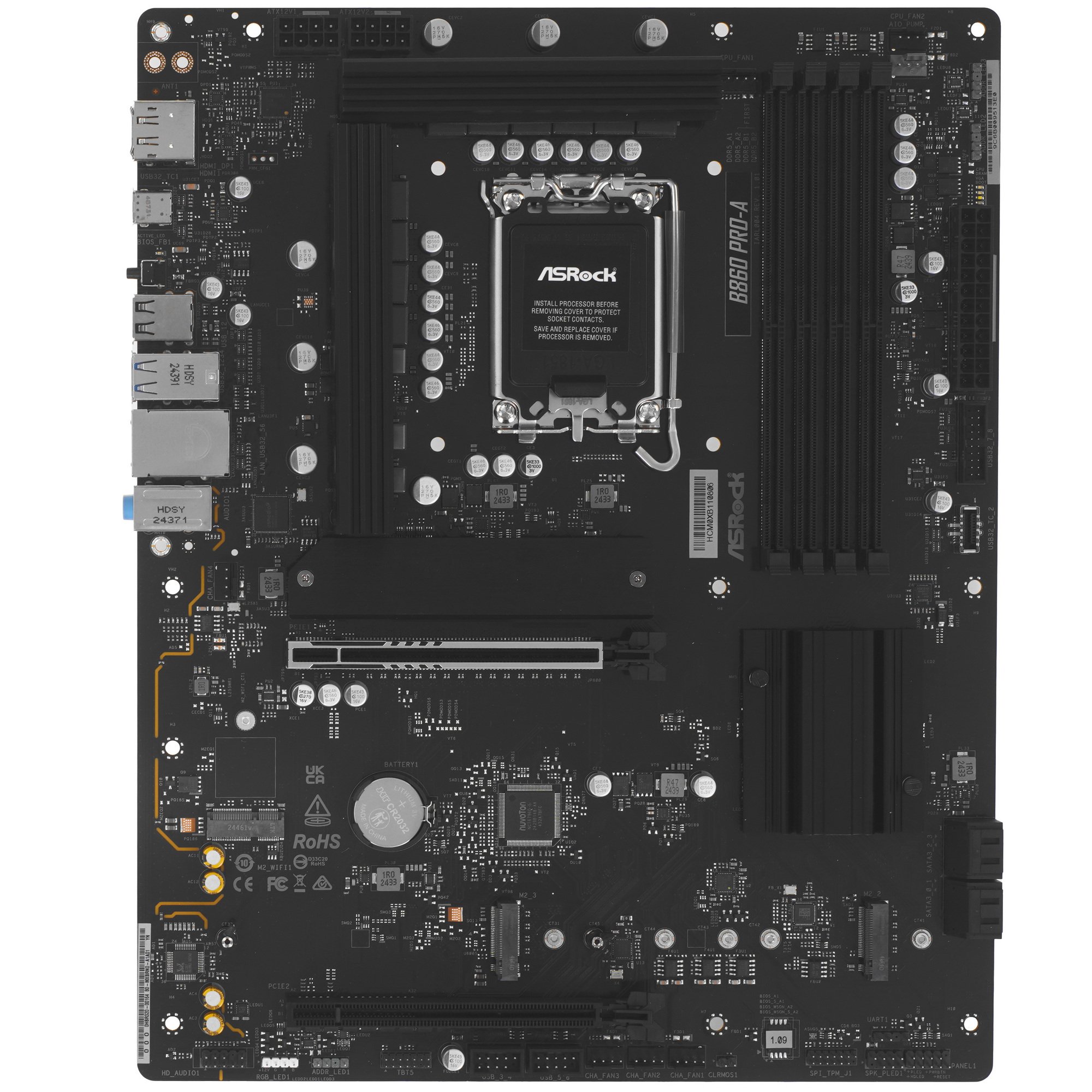 Материнская плата ASRock B860 Pro-A, LGA 1851, Intel B860, 4xDDR5, 4xSATA, 3xM.2, 1xPCIe 5.0 x16, 1xPCIe 4.0 x4, 1xDisplayPort, 1xHDMI, 1x 2.5Gb LAN, 6xUSB 3.2 Gen 1, 2xUSB 2.0, 1xUSB 3.2 Gen 2x2 (Type-C), 3x3.5 мм, 7.1, ATX