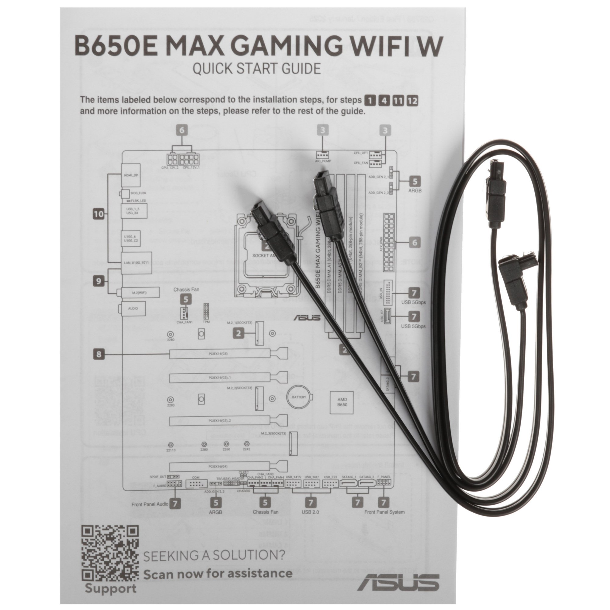 Материнская плата ASUS B650E MAX GAMING WIFI W, AM5, AMD B650, 4xDDR5, 4xSATA, 3xM.2, 1xPCIe 5.0 x16, 1xPCIe 4.0 x4, 2xPCIe 3.0 x1, 1xDP, 1xHDMI, 1x2.5Gb LAN, Wi-Fi 6E, Bluetooth 5.3, 1xUSB-C 10Gbps, 3xUSB-A 10Gbps, 2xUSB-A 5Gbps, 2xUSB-A 2.0, 3x3.5 мм, 7