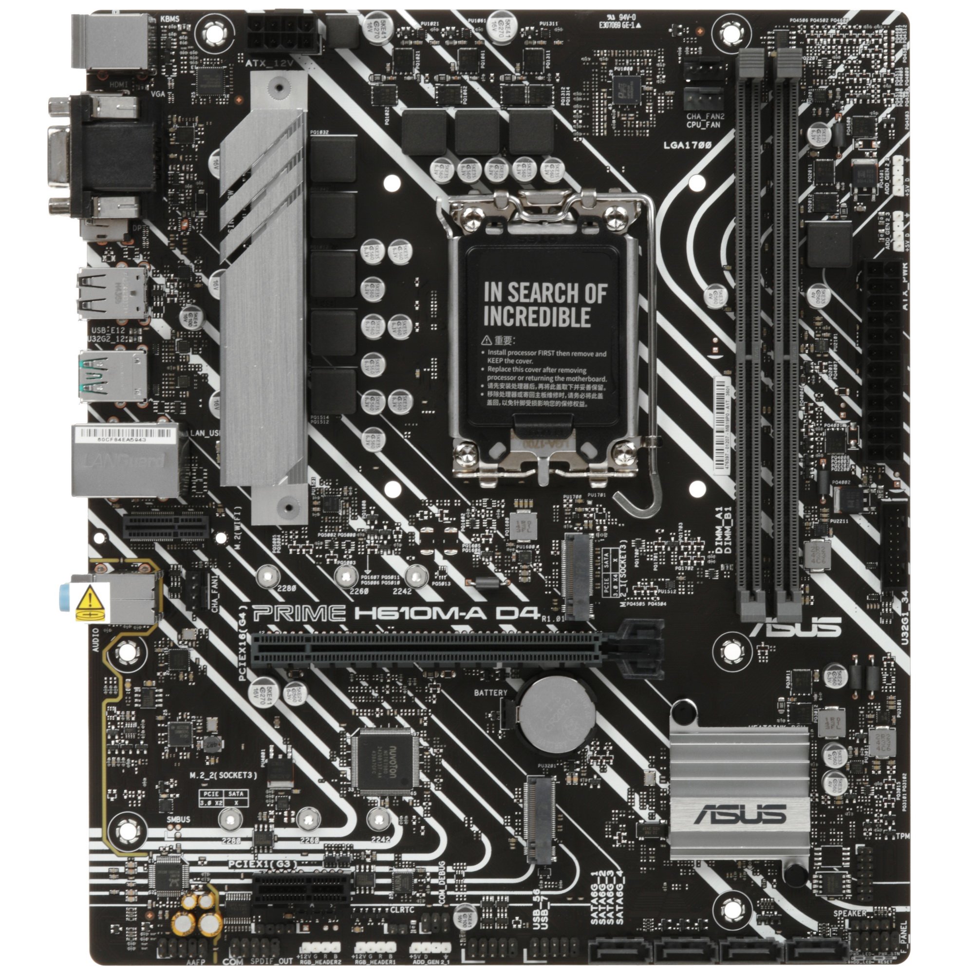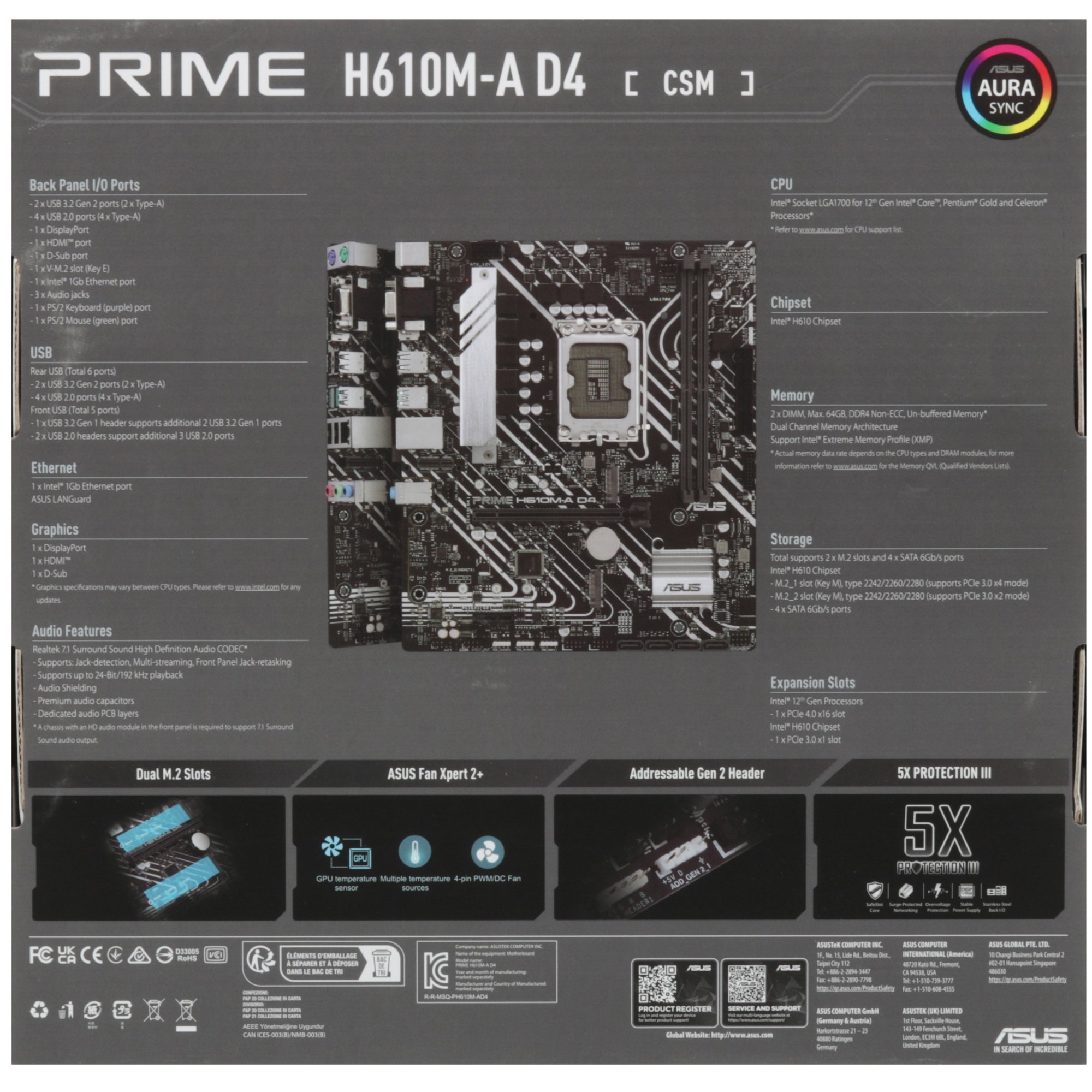 Материнская плата ASUS PRIME H610M-A D4-CSM, LGA 1700, Intel H610, 2xDDR4, 4xSATA, 2xM.2, 1xPCIe 4.0 x16, 1xPCIe x1, 1xDP, 1xD-Sub, 1xHDMI, 1x 1Gb LAN, 4xUSB-A 2.0, 2xUSB-A 3.2 Gen 1, 7.1, mATX