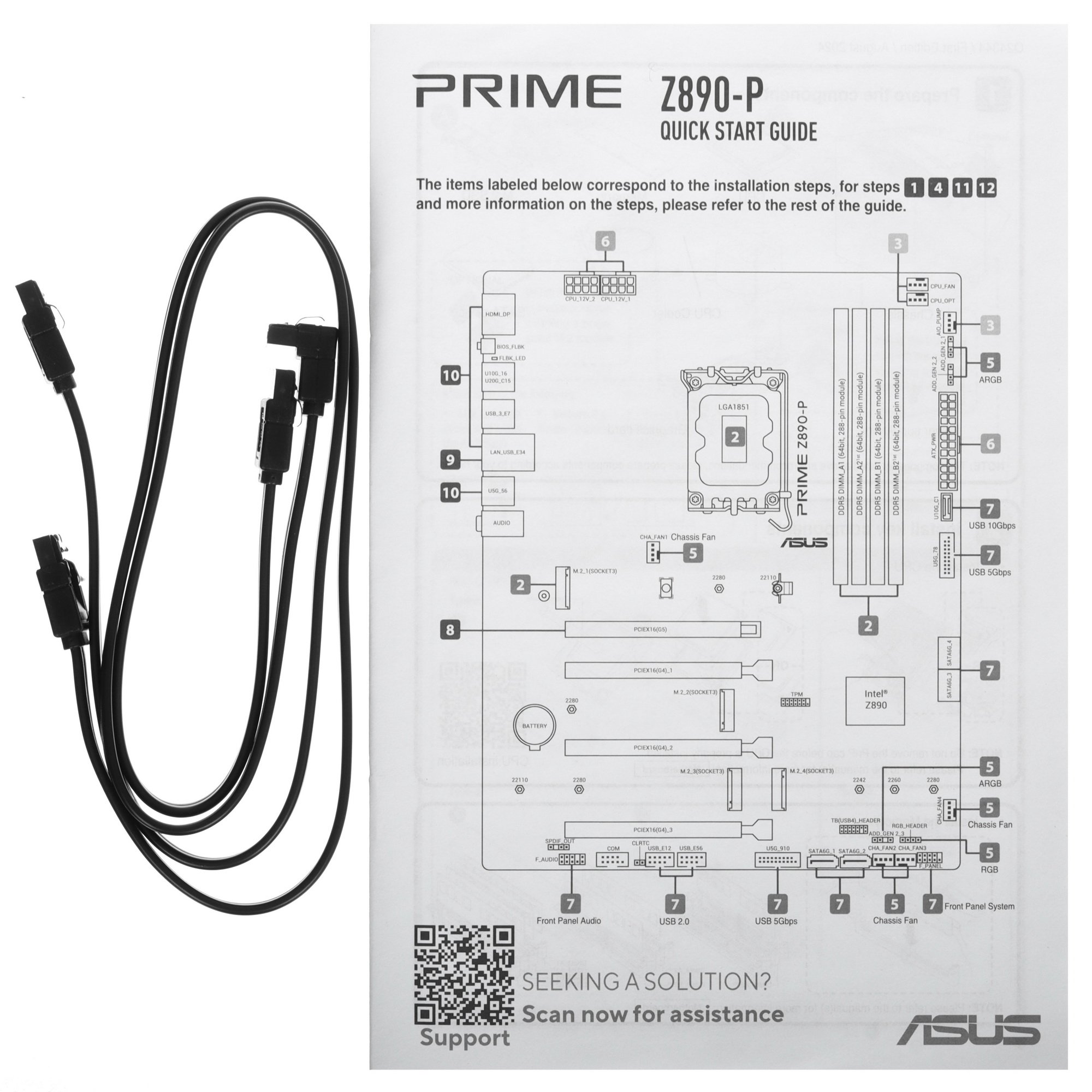 Материнская плата ASUS PRIME Z890-P WIFI, LGA 1851, Intel Z890, 4xDDR5, 4xSATA, 4xM.2, 1xPCIe 5.0 x16, 2xPCIe 4.0 x4, 1xPCIe 4.0 x1, 1xHDMI, 1xDP, 1xUSB-C (видеовыход), 2xUSB-A 3.2 Gen 1, 1xUSB-A 3.2 Gen 2, 4xUSB-A 2.0, 1xUSB-C Thunderbolt 4, 1x 2.5Gb LAN