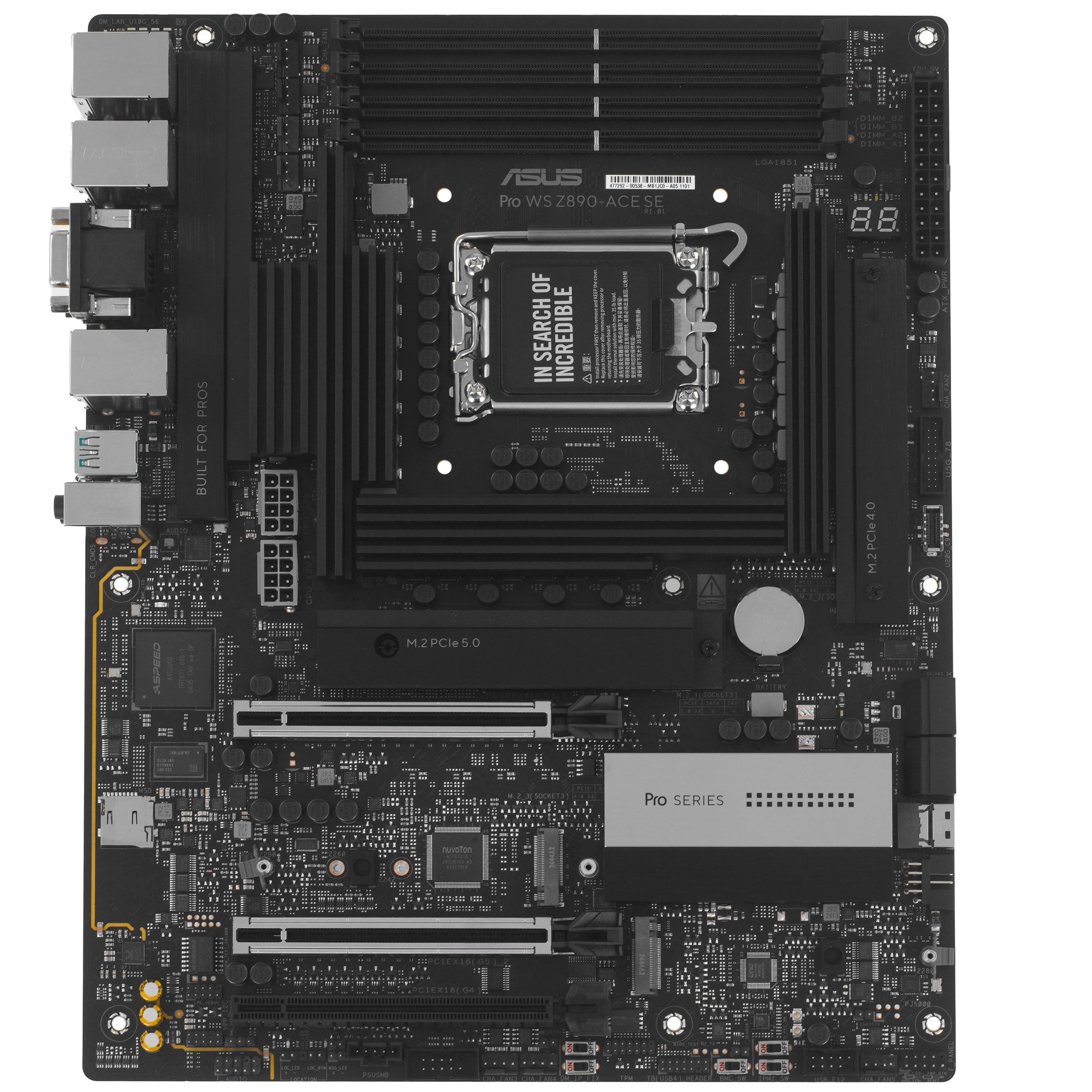 Материнская плата ASUS PRO WS Z890-ACE SE, LGA1851, Intel Z890, 4xDDR5, 4xM.2, 8xSATA, 2xPCIe 5.0 x16, 1xPCIe 4.0 x4, 1xHDMI, 1xThunderbolt 4 (USB-C), 1xVGA, 1x10Gb LAN, 1x2.5Gb LAN, 6xUSB-A 10Gbps, 1xUSB-C 20Gbps, 2x3.5 мм аудио, 7.1, ATX