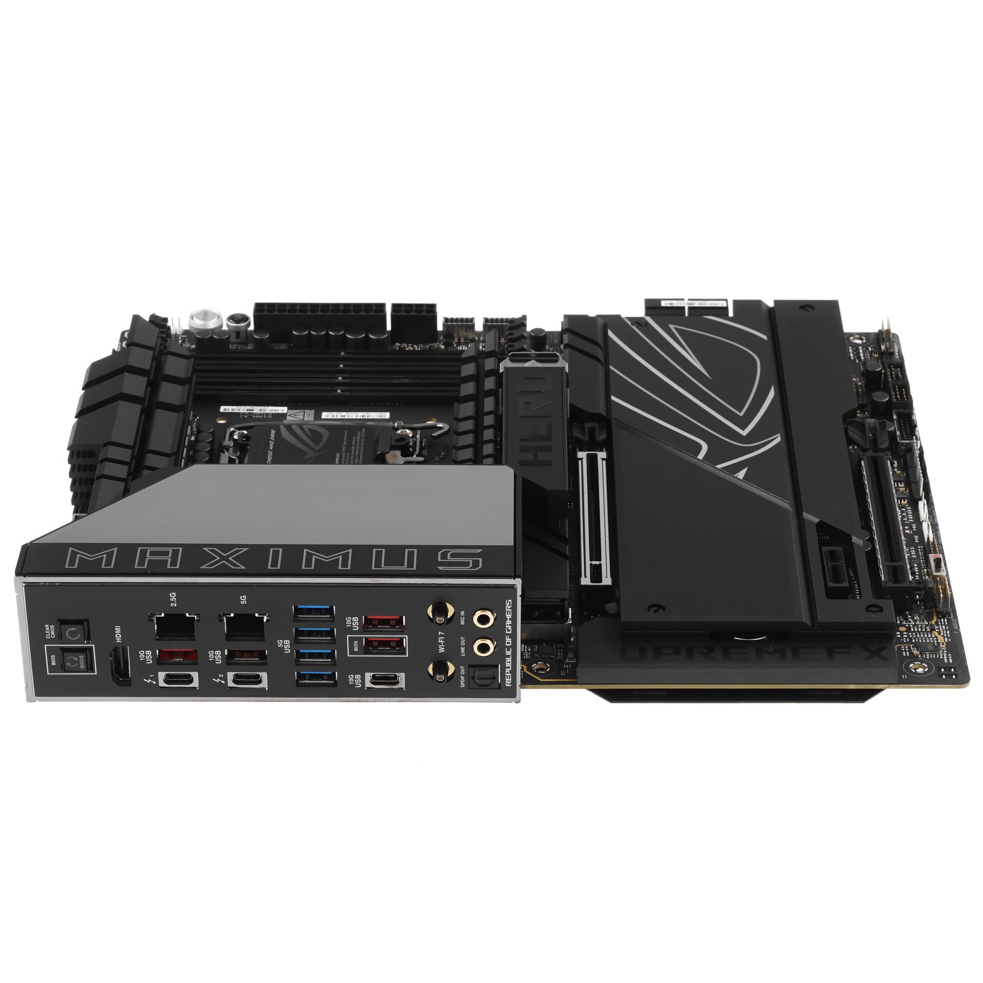 В ASUS ROG MAXIMUS Z890 HERO реализованы проводные контроллеры со скоростью 2.5 и 5 Гбит/с, контроллер беспроводной связи Wi-Fi 7 для стабильного соединения с Интернетом. Усиленная подсистема питания 22+1+2+2 фаз, твердотельные конденсаторы и другие надежные составляющие гарантируют стабильность работы материнской платы. Подсветка ARGB поддерживает синхронизацию с устройствами и предлагает широкие возможности программирования по предпочтениям пользователя.