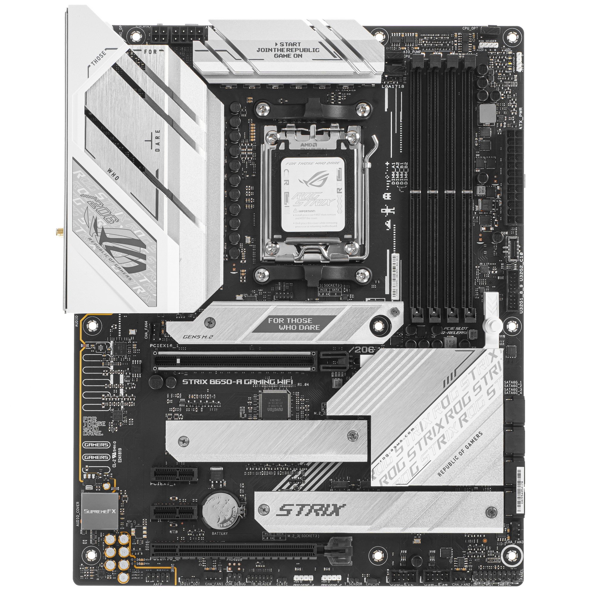 Материнская плата ASUS ROG STRIX B650-A GAMING WIFI, AM5, AMD B650, 4xDDR5, 4xSATA, 3xM.2, 1xPCIe 4.0 x16, 1xPCIe 4.0 x4, 1xHDMI, 1xDP, 1x 2.5Gb LAN, 3xUSB-A 3.2 Gen 2, 4xUSB 2.0, 5x3.5 мм, 7.1, Standard-ATX