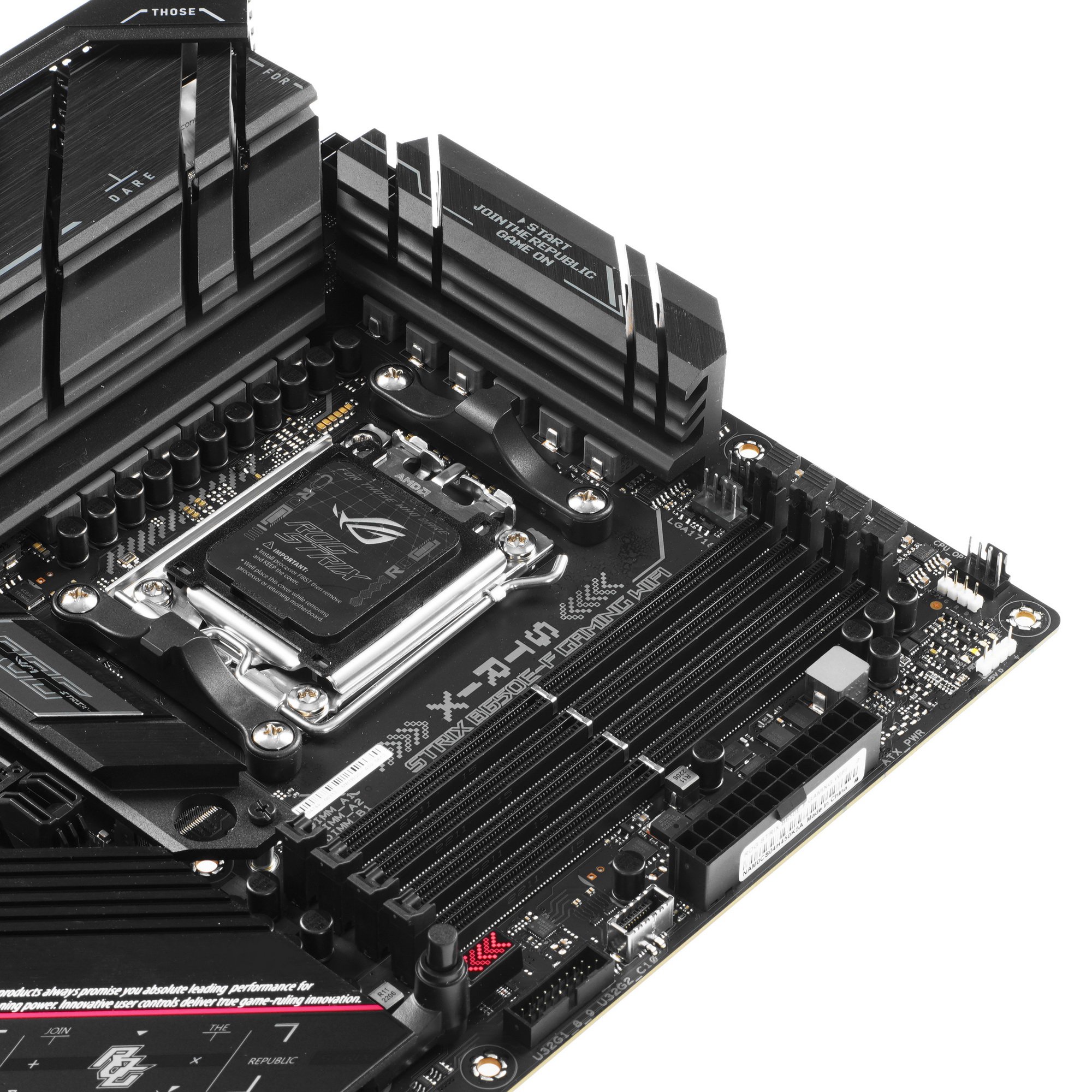Материнская плата ASUS ROG STRIX B650E-F GAMING WIFI, AM5, AMD B650, 4xDDR5, 4xSATA, 3xM.2, 1xPCI-E 5.0 x16, 1xPCI-E 4.0 x4, 2xPCI-E x1, 1xHDMI, 1xDP, 1x 2.5Gb LAN, 4xUSB-A 2.0, 4xUSB-A 3.2 Gen 1, 2xUSB-A 3.2 Gen 2, 1xUSB-C 3.2 Gen 2, 1xUSB-C 3.2 Gen 2x2,