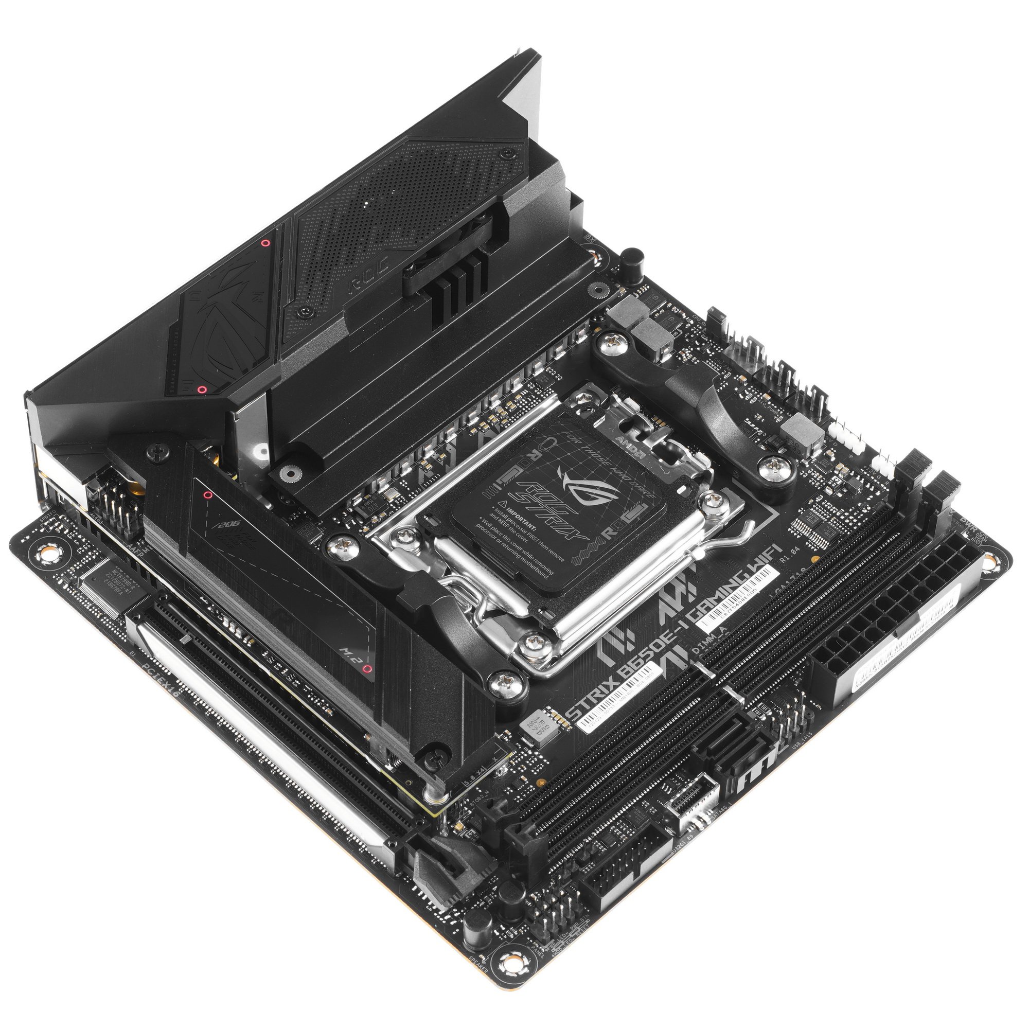 Материнская плата ASUS ROG STRIX B650E-I GAMING WIFI, AM5, AMD B650, 2xDDR5, 2xSATA, 2xM.2, 1xPCIe 5.0 x16, 1xHDMI, 1x 2.5Gb LAN, 4xUSB-A 3.2 Gen 2, 1xUSB-A 3.2 Gen 1, 1xUSB-C 3.2 Gen 2x2, 3x3.5 мм, 7.1, Mini-ITX