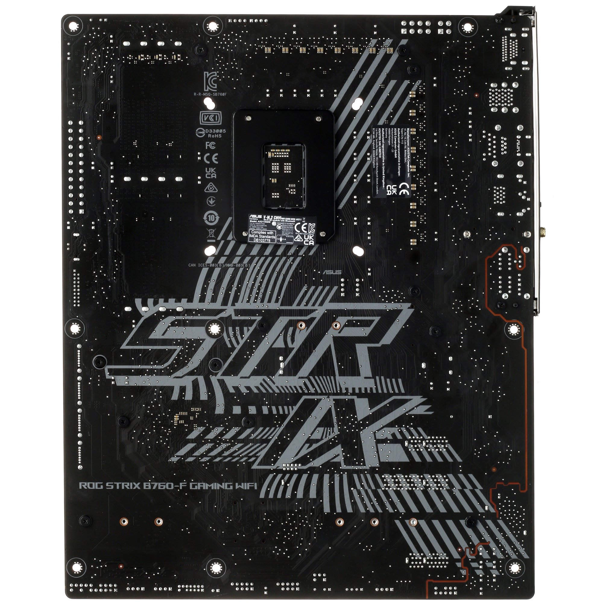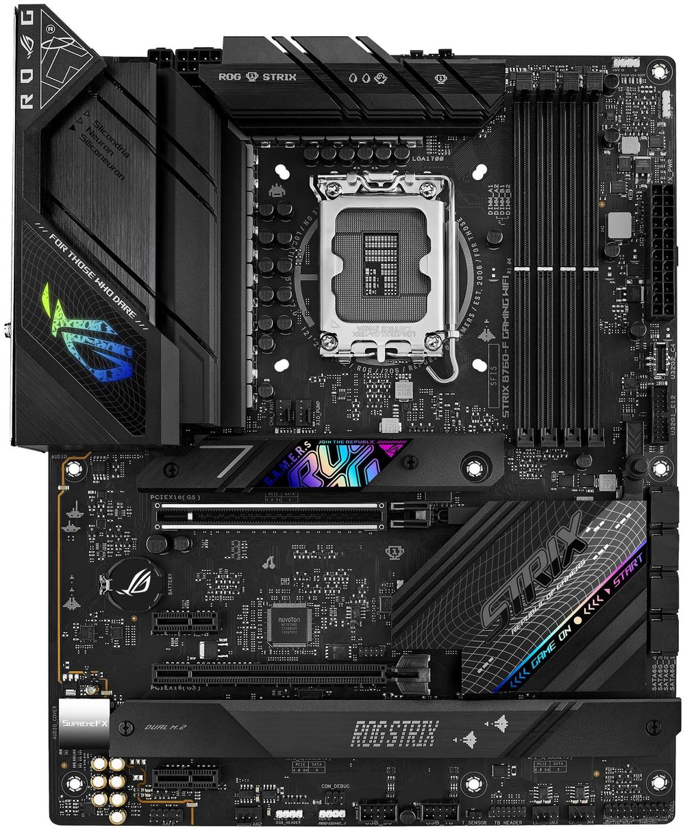 Материнская плата ASUS ROG STRIX B760-F GAMING WIFI, LGA 1700, Intel B760, 4xDDR5, 4xSATA, 3xM.2, 1xPCI-E 5.0 x16, 1xPCI-E 3.0 x4, 1xHDMI, 1xDP, 1x 2.5Gb LAN, 1xUSB-A 3.2 Gen 2, 6xUSB-A 3.2 Gen 1, 1xUSB-C 3.2 Gen 2x2, 5x3.5 мм, 7.1, Standard-ATX