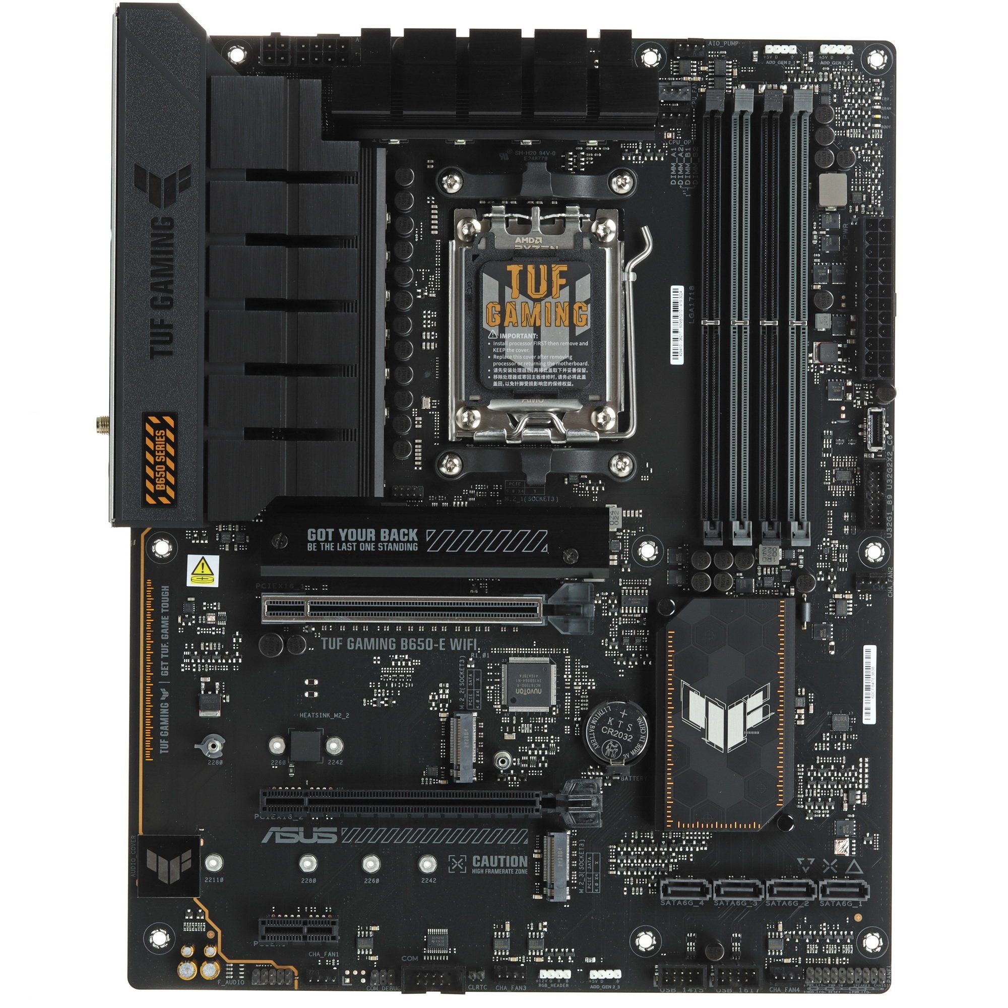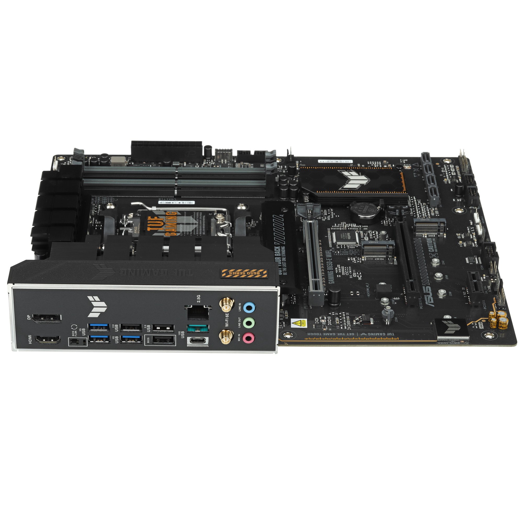 Материнская плата ASUS TUF GAMING B650-E WIFI, AM5, AMD B650, 4xDDR5, 4xSATA, 2xM.2, 1xPCI-E 4.0 x16, 2xPCI-E x1, 2xDP, 1xHDMI, 1x 2.5Gb LAN, 1xUSB-A 3.2 Gen 2, 2xUSB-A 3.2 Gen 1, 4xUSB-A 2.0, 1xUSB-C 3.2 Gen 2, 3x3.5 мм, 7.1, ATX
