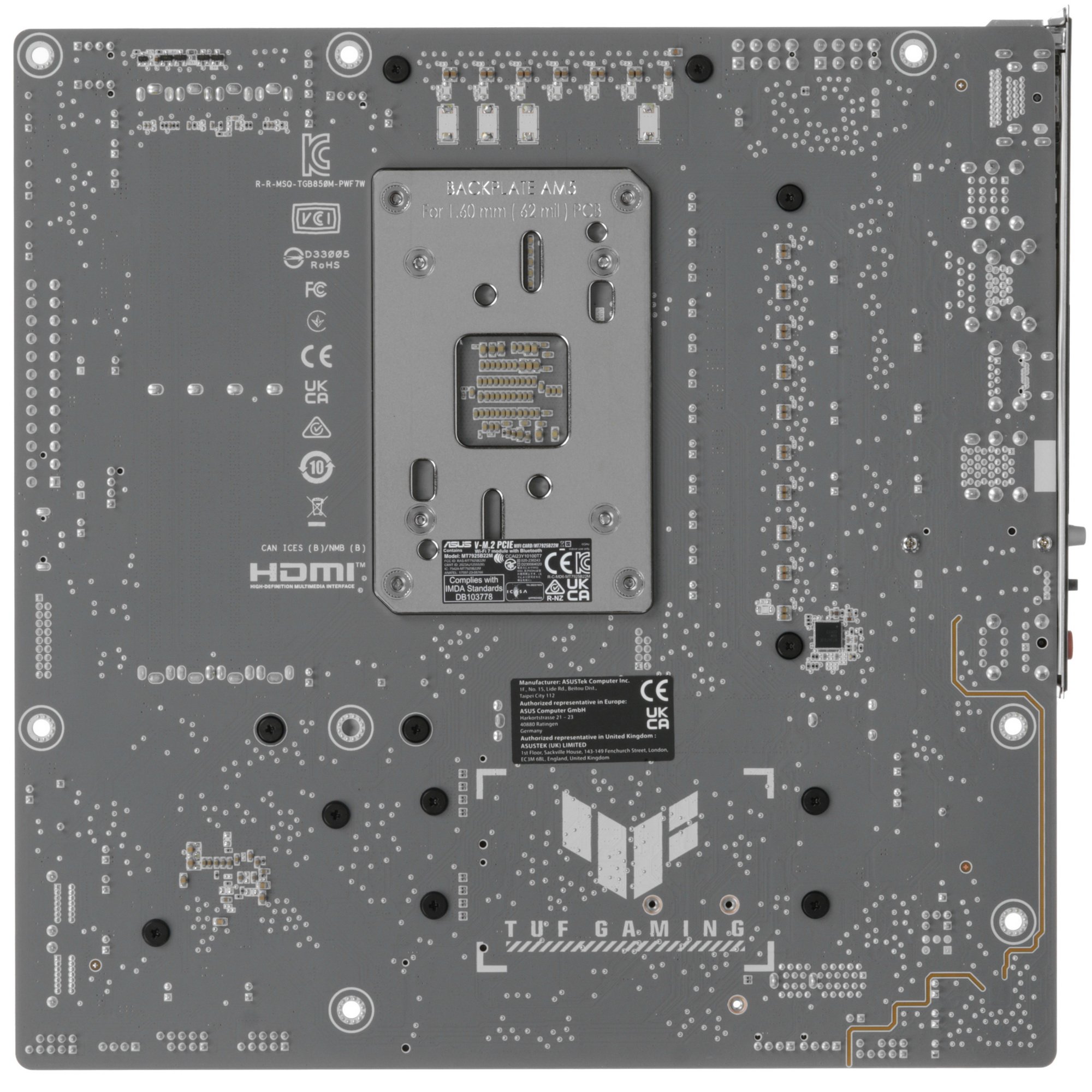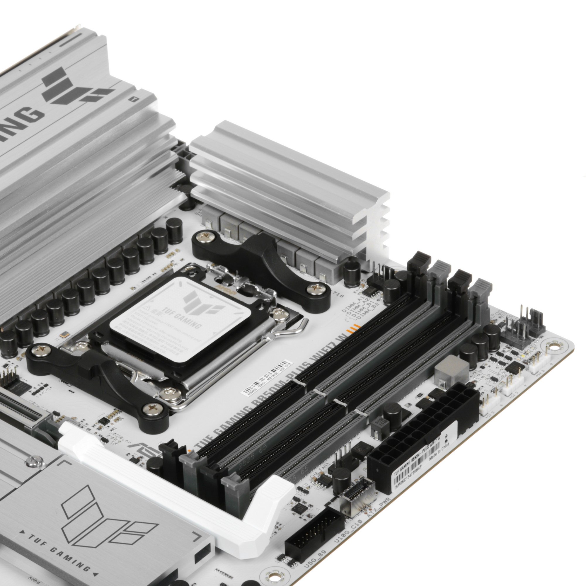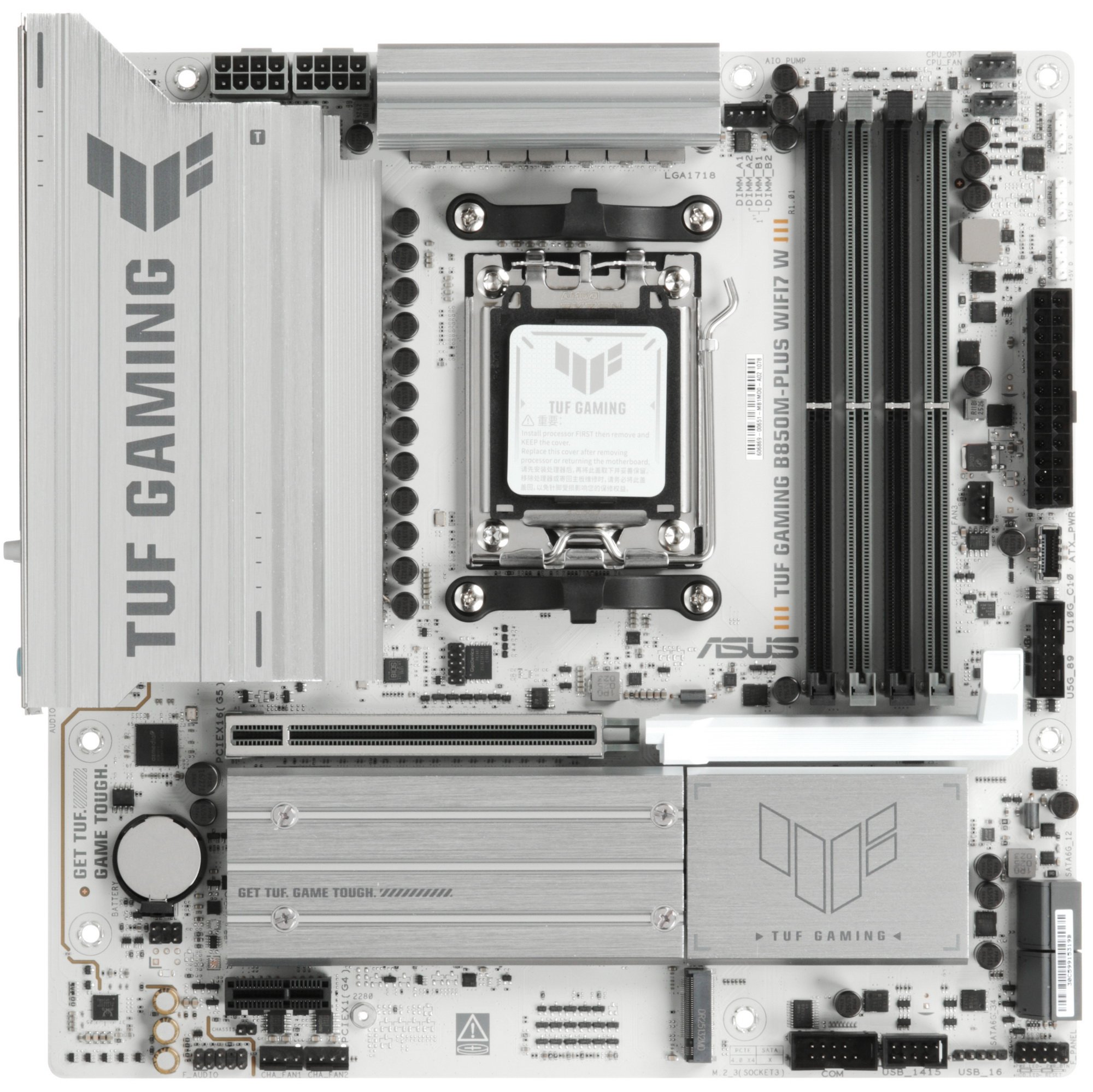 Материнская плата Asus TUF GAMING B850M-PLUS WIFI7 W, AM5, AMD B850, 4xDDR5, 4xSATA, 3xM.2, 1xPCIe 5.0 x16, 1xPCIe 3.0 x1, 1xDP, 1xHDMI, 1x2.5Gb LAN, Wi-Fi 7, Bluetooth 5.4, 1xUSB-C 20Gbps, 3xUSB-A 10Gbps, 4xUSB-A 5Gbps, 4xUSB-A 2.0, 5x3.5 мм, 7.1, mATX