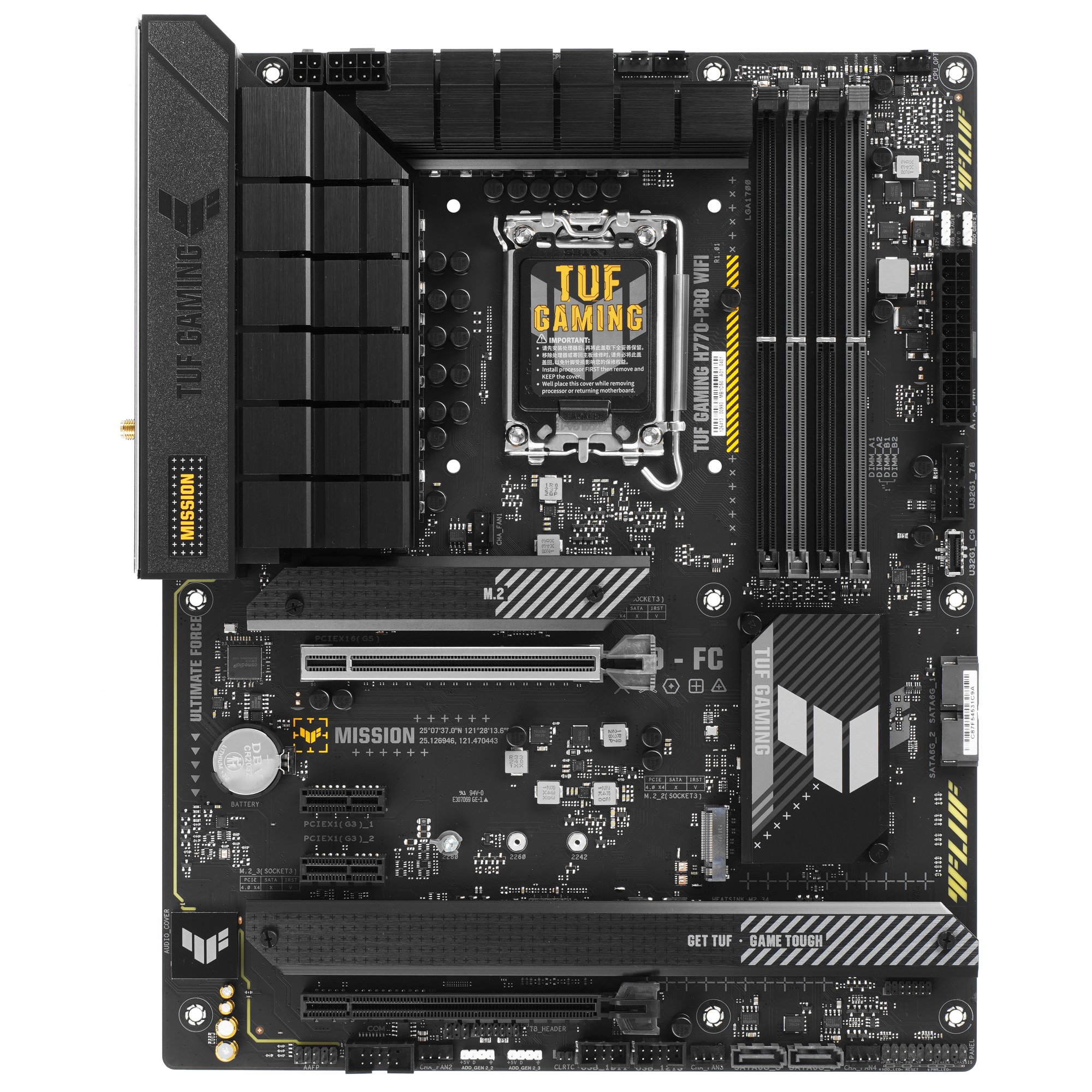 Материнская плата ASUS TUF GAMING H770-PRO WIFI, LGA 1700, Intel H770, 4xDDR5, 4xSATA, 4xM.2, 1xPCIe 5.0 x16, 1xPCIe 4.0 x4, 2xUSB-A 3.2 Gen 2, 4xUSB-A 3.2 Gen 1, 1xUSB-C 3.2 Gen 2x2, 1x2.5Gb LAN, 5x3.5 мм, 7.1, Standard-ATX