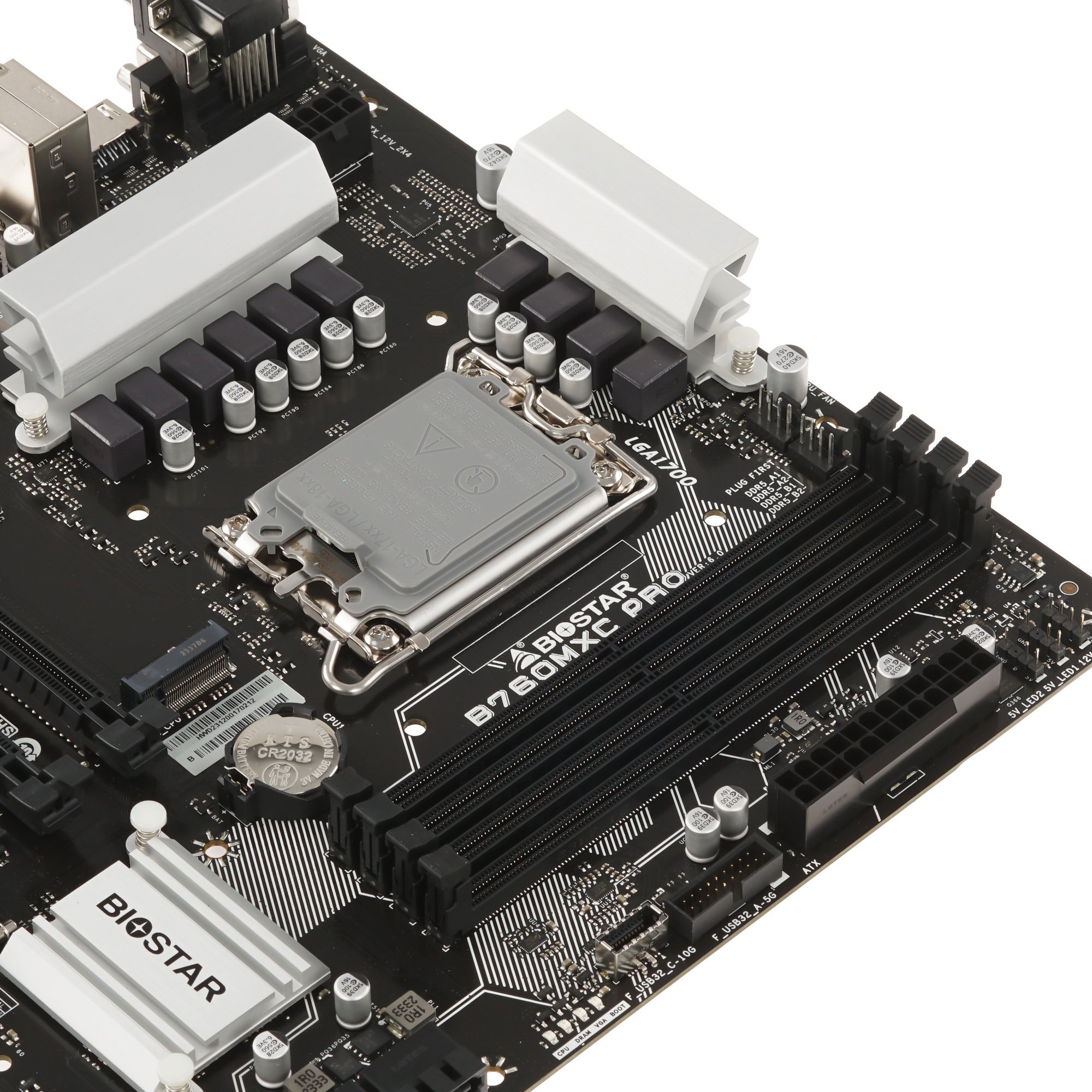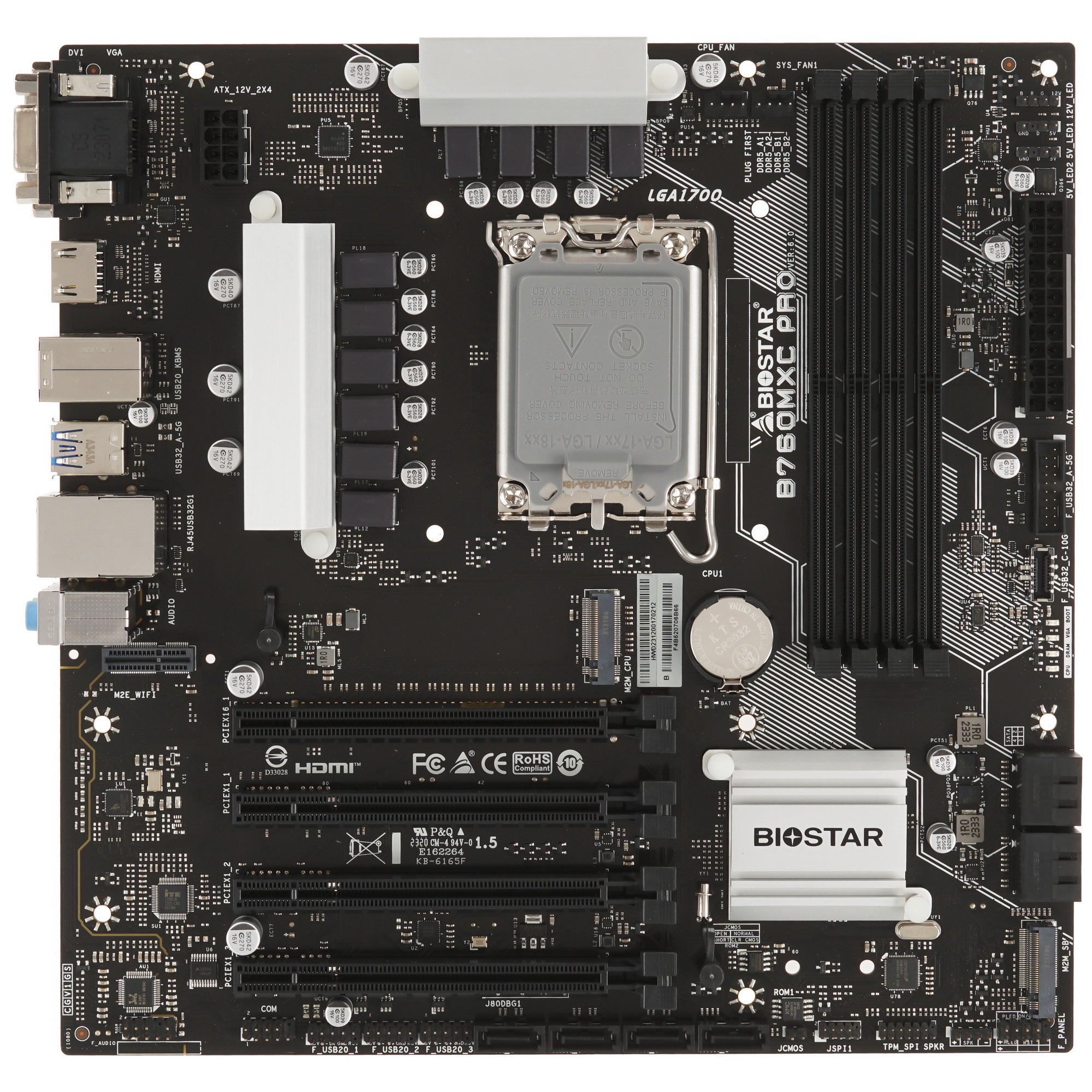 Материнская плата Biostar B760MXC PRO, LGA 1700, Intel B760, 4xDDR4, 8xSATA, 2xM.2, 1xPCIe 4.0 x16, 3xPCIe 3.0 x1, 1xHDMI, 1xDVI, 1xVGA, 1x 1Gb LAN, 4xUSB-A 3.2 Gen 2, 2xUSB-A 2.0, 3x3.5 мм, 7.1, mATX