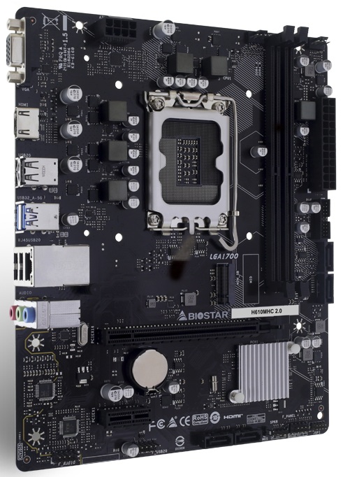 Материнская плата Biostar H610MHC 2.0, LGA1700, Intel H610, 2xDDR4, 4xSATA, 1xM.2, 1xPCIe 4.0 x16, 1xPCIe 3.0 x1, 1xHDMI, 1xVGA, 1x1Gb LAN, 2xUSB-A 5Gbps, 4xUSB-A 2.0, 3x3.5 мм, 7.1, mATX