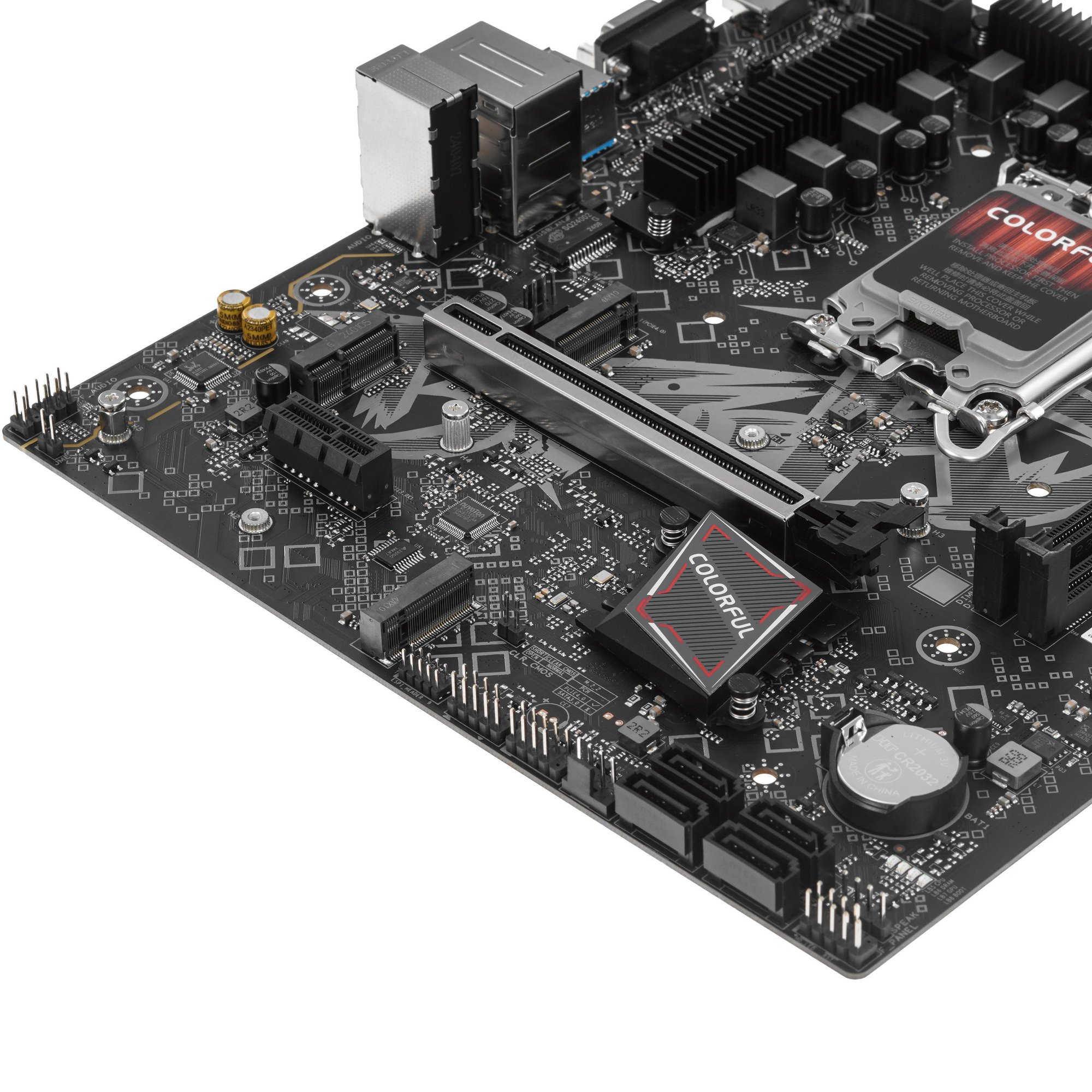 Материнская плата Colorful BATTLE-AX B760M-D PRO V20, LGA 1700, Intel B760, 2xDDR4, 4xSATA, 2xM.2, 1xPCIe 4.0 x16, 1xPCIe x1, 1xHDMI, 1xDP, 1x2.5Gb LAN, 2xUSB-A 2.0, 4xUSB 3.2 Gen 1, 3x3.5 мм, 5.1, mATX