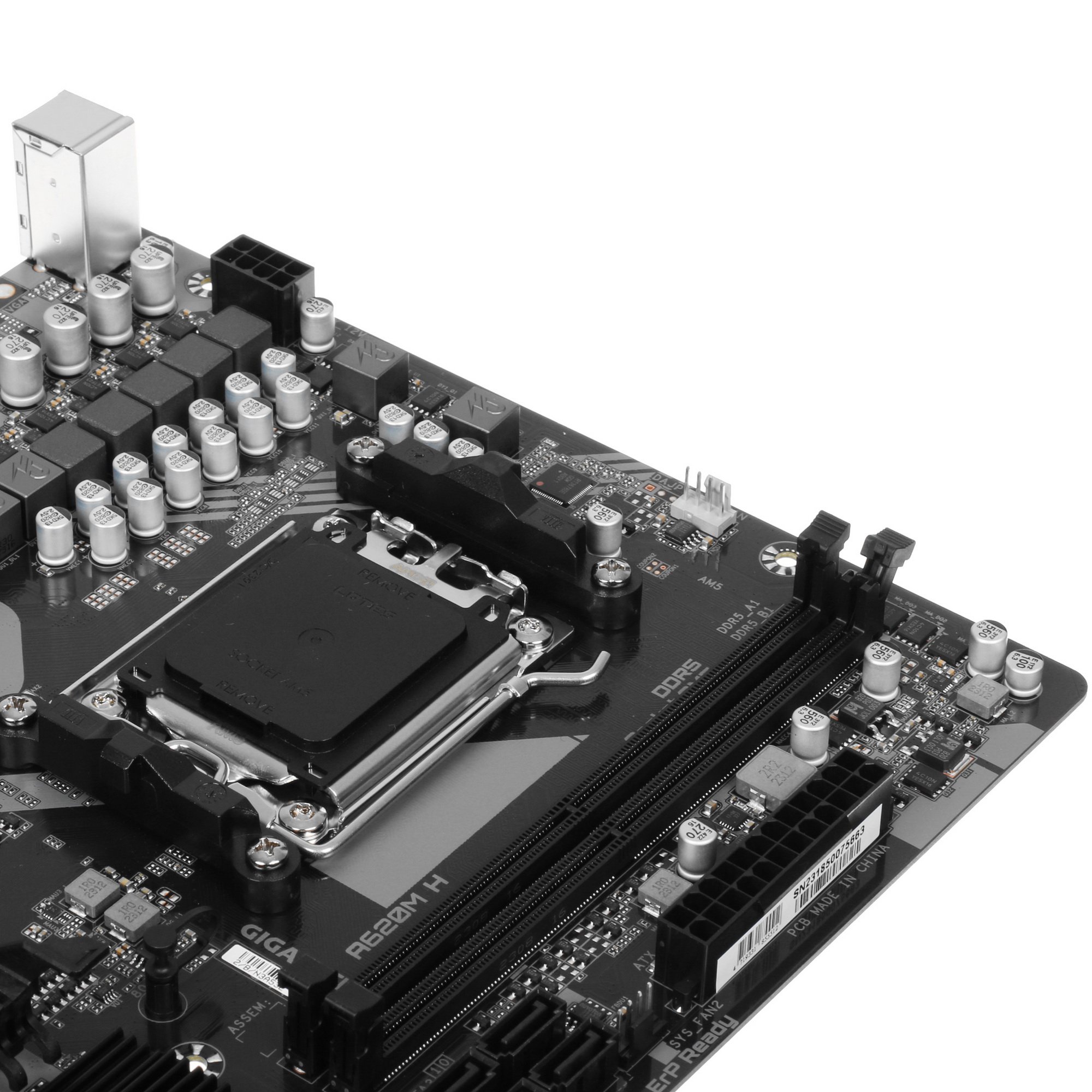 Материнская плата GIGABYTE A620M H выполнена в форм-факторе Micro-ATX и поддерживает совместную работу с процессорами AMD, в которых применяется сокет AM5. Для подключения модулей оперативной памяти суммарным объемом до 128 ГБ предусмотрены 2 слота DIMM стандарта DDR5. Графическую дискретную видеокарту можно разместить при помощи слотов PCI-E x16 и PCI-E x1. Поддержка накопителей HDD/SSD реализована благодаря 4 разъемам SATA и 1 M.2.