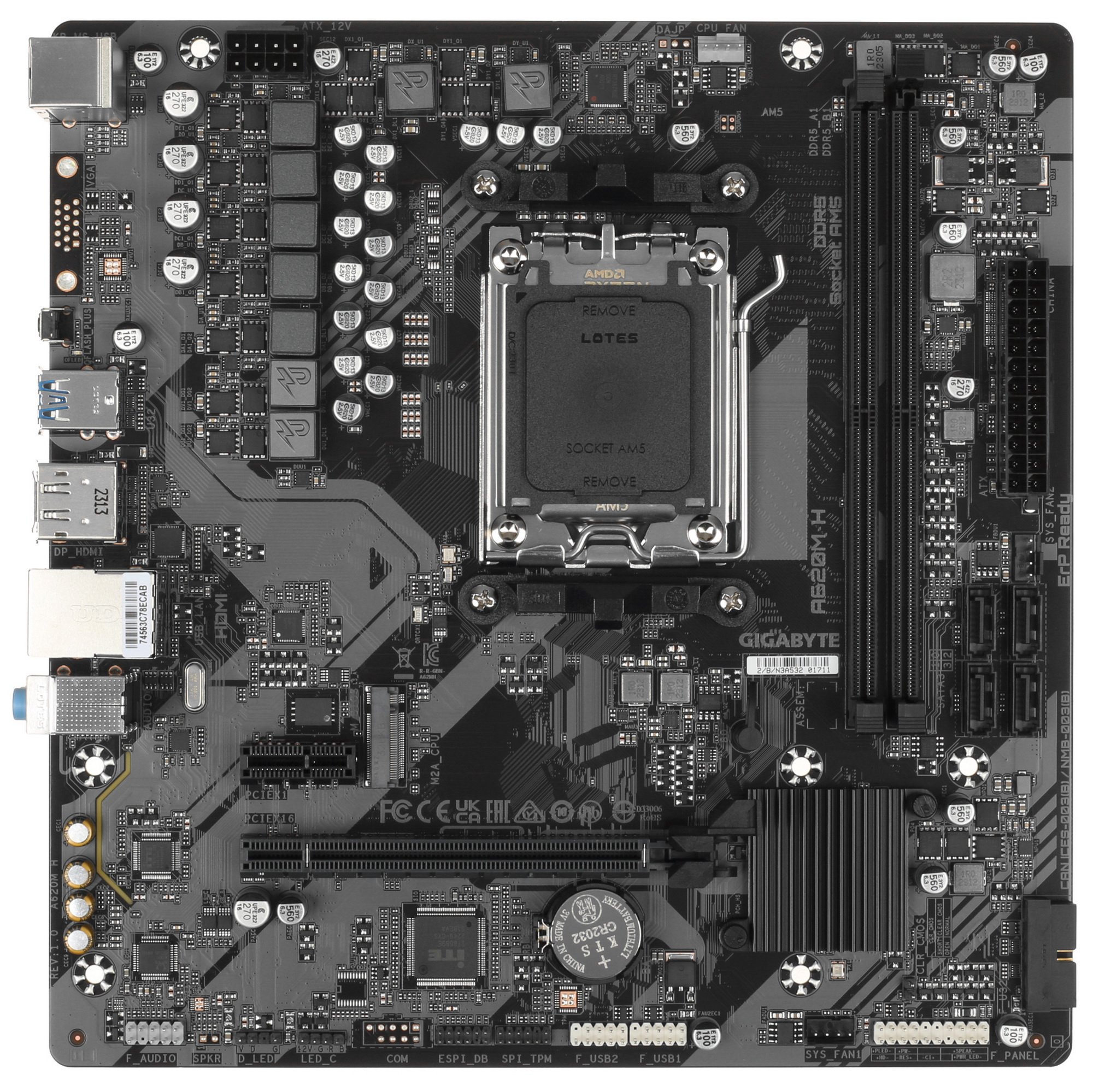 Материнская плата Gigabyte A620M H (V1.2/V2.0), SocketAM5 AMD A620 2xDDR5 mATX AC`97 8ch(7.1) GbLAN RAID+VGA+HDMI